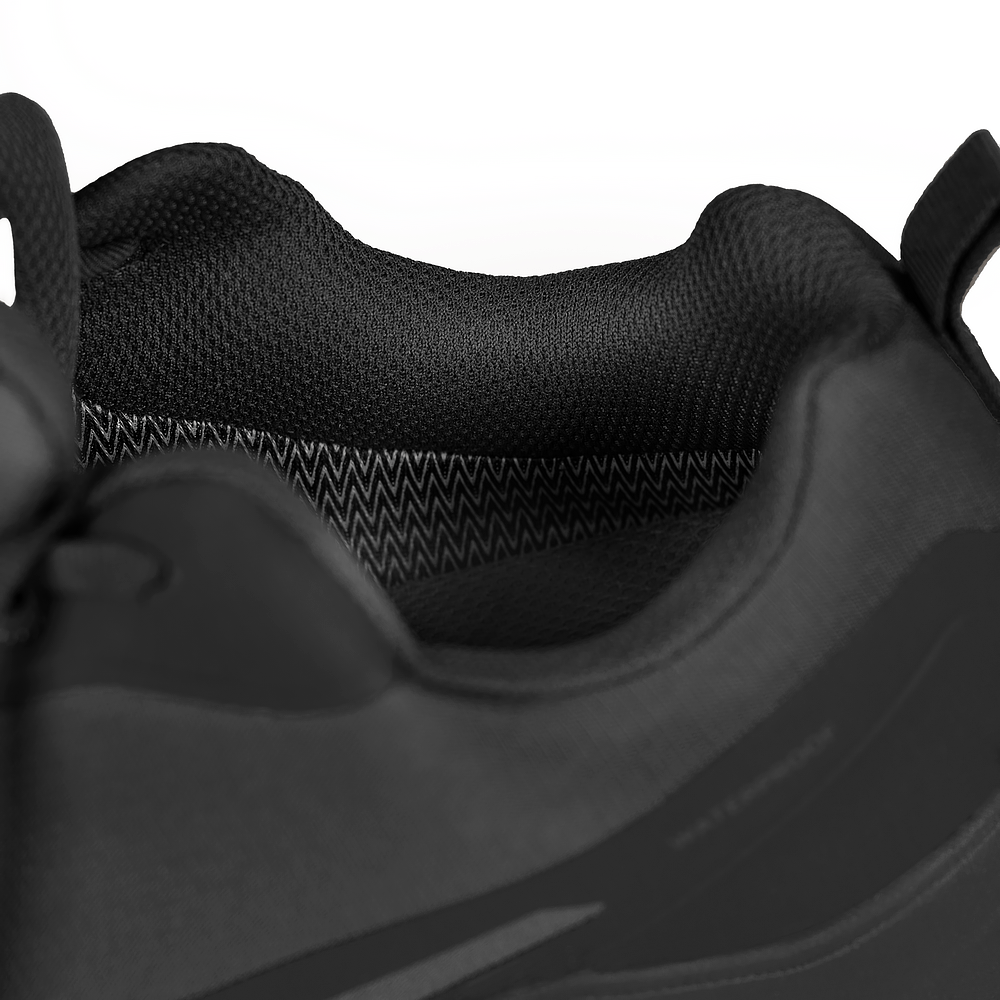 Перед носка посилено щільною накладкою, оскільки ця зона найчастіше “збивається” та додатково захищає Ваші пальці. Задня частина кросівка має тверду посилену вставку, щоб надійно фіксувати стопу. А язичок прошитий до верху, щоб запобігти потраплянню бруду та вологи всередину.