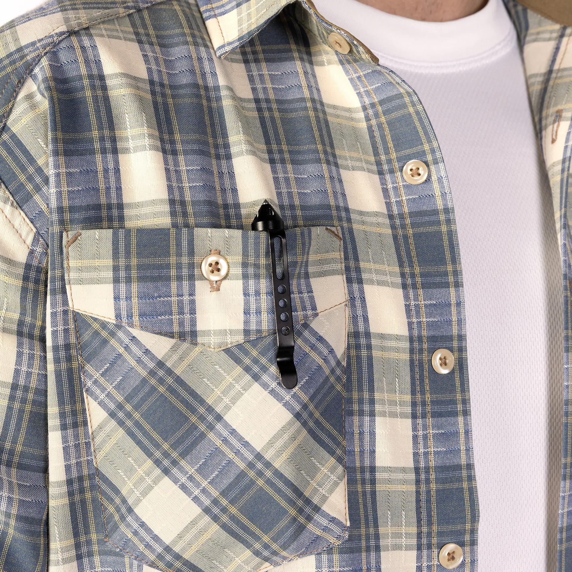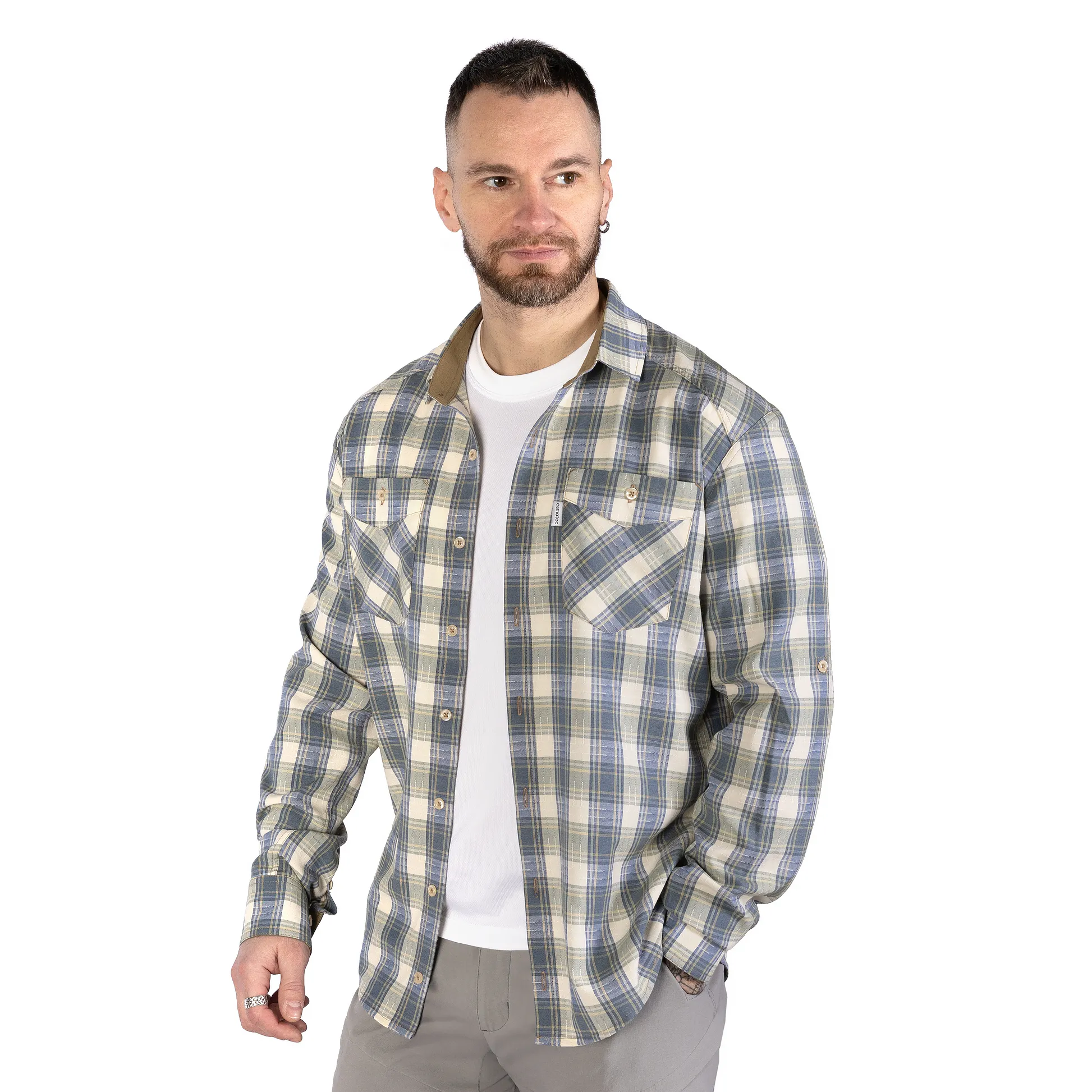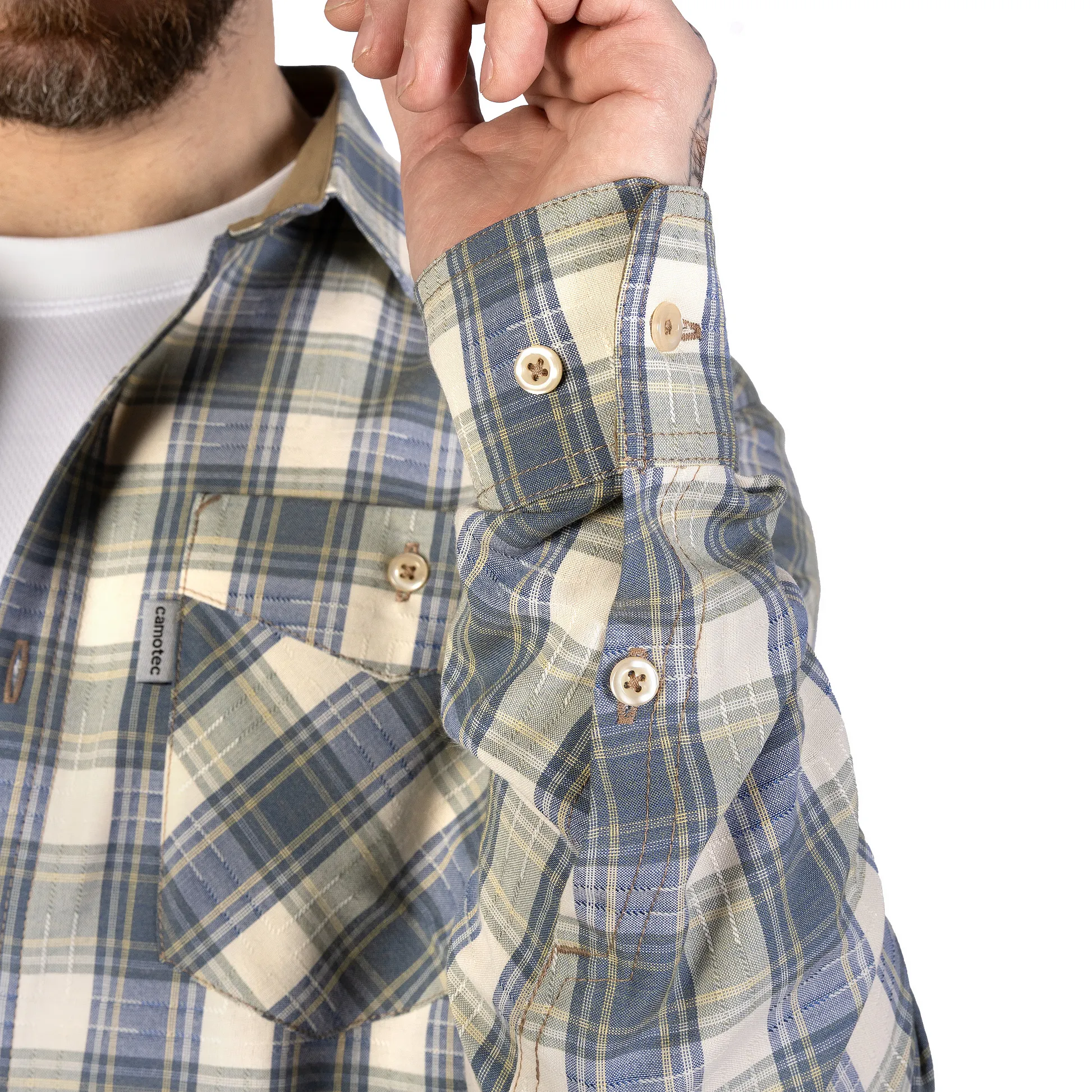 Наша сорочка поєднує класичний дизайн із нагрудними кишенями та картатим візерунком із продуманими функціональними деталями, що залишаються непомітними зовні, але суттєво підвищують зручність у носінні.