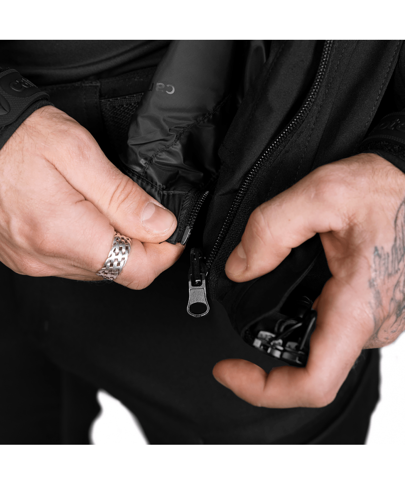 Куртка оснащена двома внутрішніми кишенями, двома зовнішніми фронтальними кишенями, великою наскрізною кишенею ззаду, а також кишенею на рукаві над манжетом. Усі зовнішні кишені виконані на застібках-блискавках і додатково обладнані вентиляційною сіткою Cool Mesh.