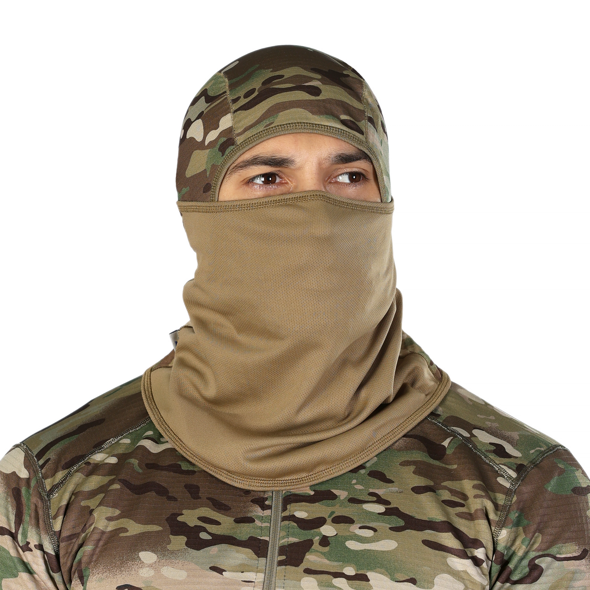 Нижня частина балаклави рухома, що дозволяє легко та швидко регулювати посадку на голові та змінювати конфігурацію носіння. Її можна використовувати як підшоломник, шапку, маску чи баф.