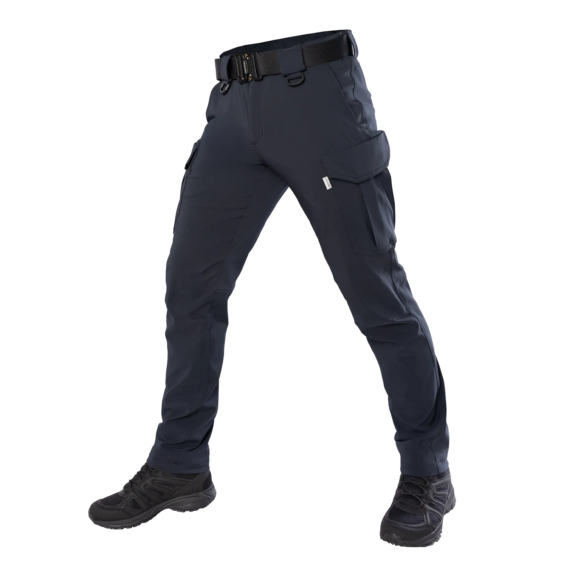 Штани мають дві класичні передні кишені та дві місткі бокові кишені, типу карго, на стегнах із застібками на липучках.