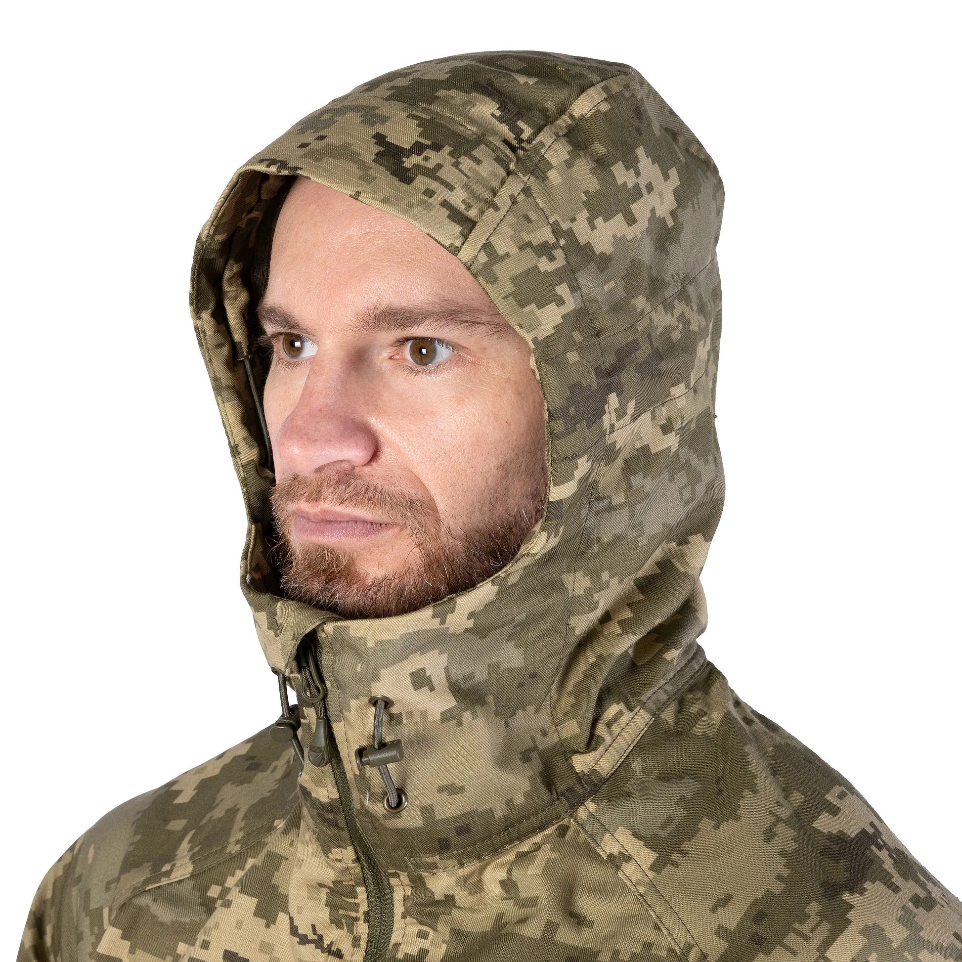 Куртка з каптуром має дві містких кишені спереду і дві кишені на рукавах, під липучками для патчів або шевронів.