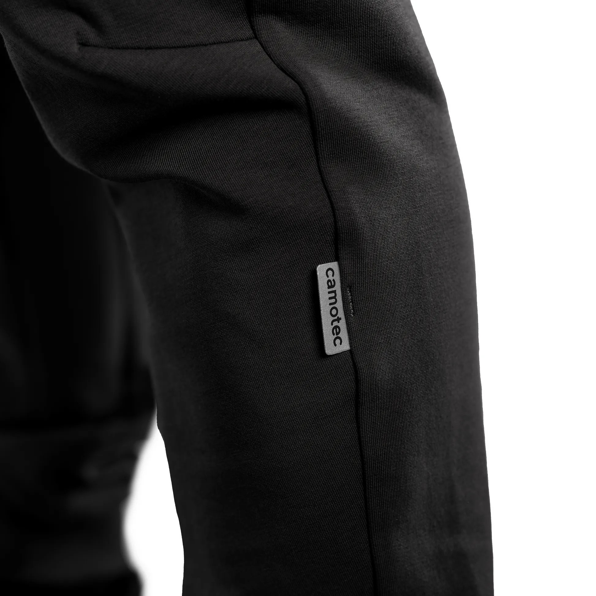 Штани виготовлені з легкої, зносостійкої та еластичної тканини ShapeKnit. Це трикотаж подвійного плетіння з гладкою поверхнею, який добре тримає форму та тягнеться в чотирьох напрямках. Матеріал поєднує бавовну, поліестер і спандекс, що забезпечує комфорт, хорошу повітропроникність, еластичність, зносостійкість, а також збереження кольору.