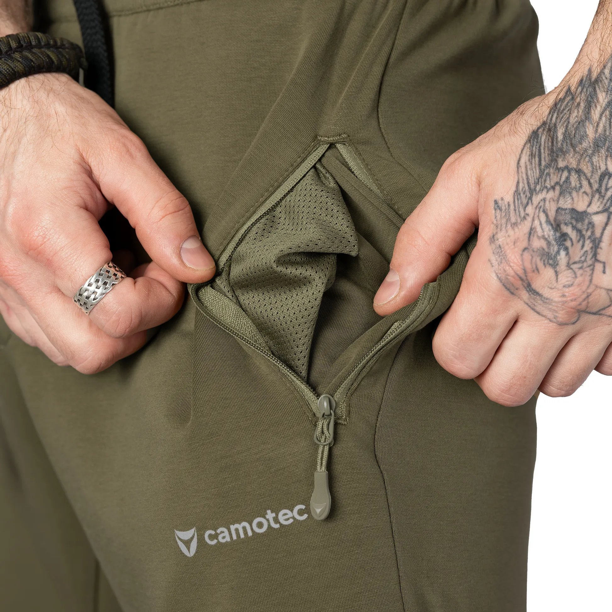Штани оснащені двома боковими кишенями на блискавках із пуллерами. Внутрішня частина кишень виконана з міцного, зносостійкого сітчастого матеріалу.