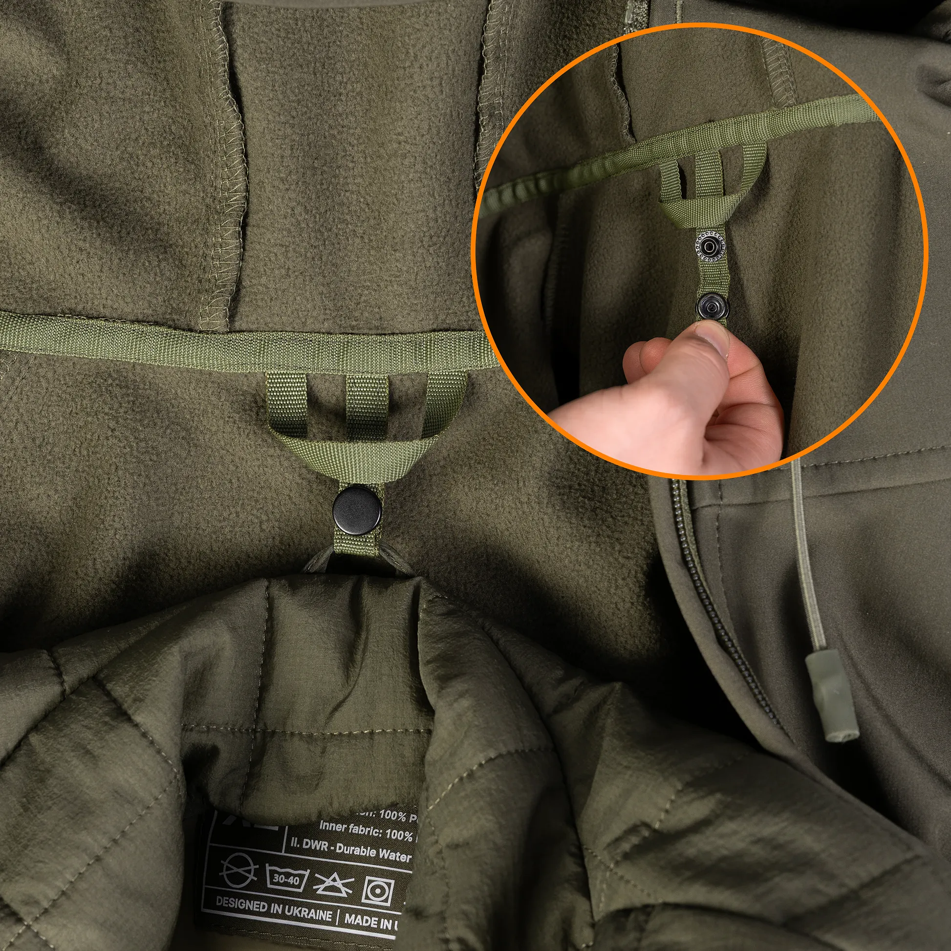 Волого-вітрозахисна, мембранна куртка softshell. 3-х шарова тканина дозволяє замінити ним кілька шарів звичайного одягу. Зовнішній шар та мембрана захищають від негоди (дрібні опади та вітер). Внутрішній мікрофліс зігріває та зберігає тепло тіла. У цій версії куртки передбачені спеціальні кріплення для надійної фіксації підстібки.