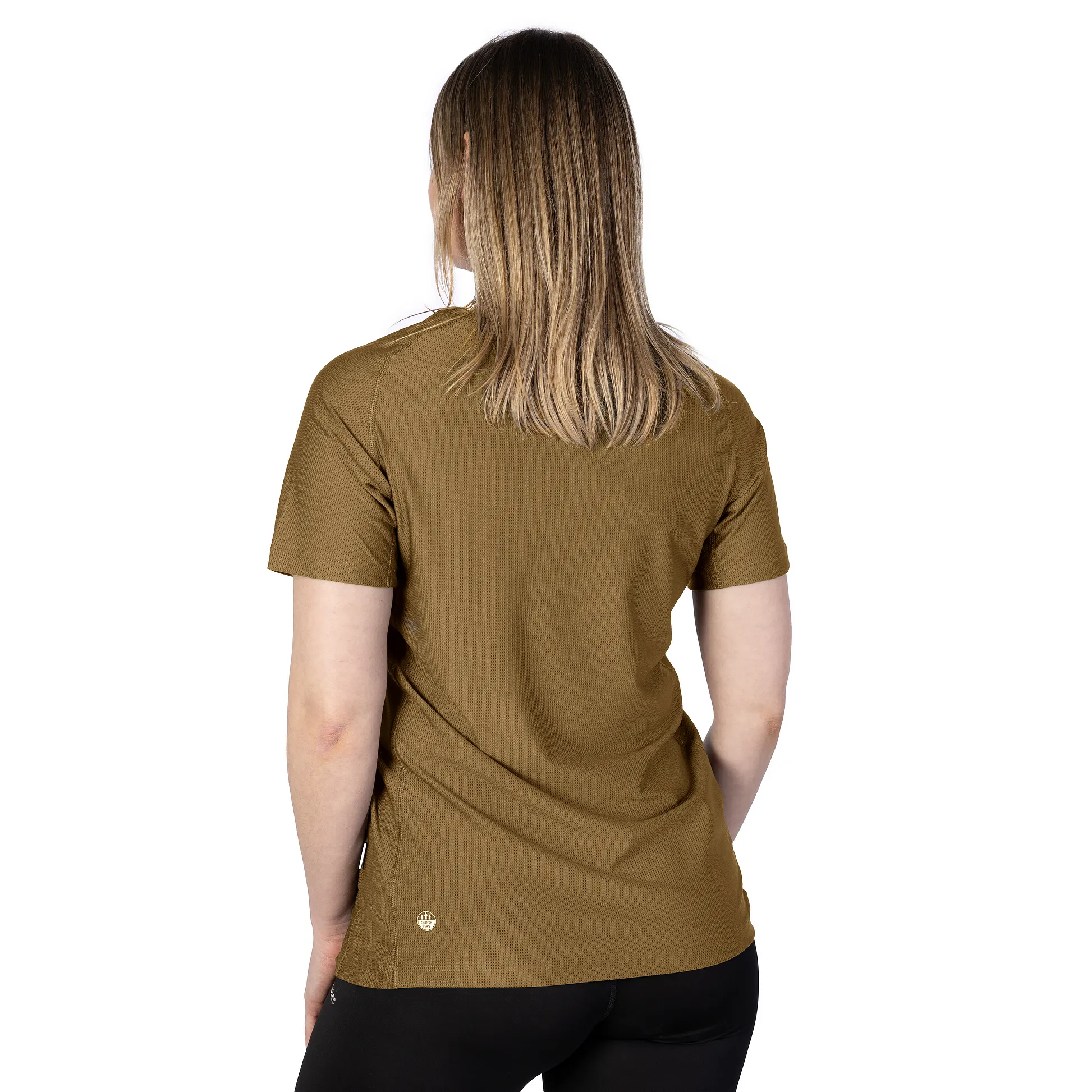 Крім своїх функціональних переваг, ця футболка має сучасний, ергономічний дизайн, з урахуванням жіночої анатомії. Завдяки спеціальним виточкам по боках вона ідеально лягає по тілу, не обмежує рухів та забезпечує відмінну свободу рухів. Завдяки плоским швам, вона майже невідчутна на тілі, навіть при тривалому використанні, тому ви можете насолоджуватися комфортом протягом усього дня.