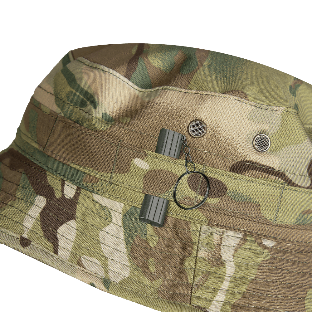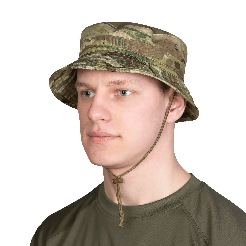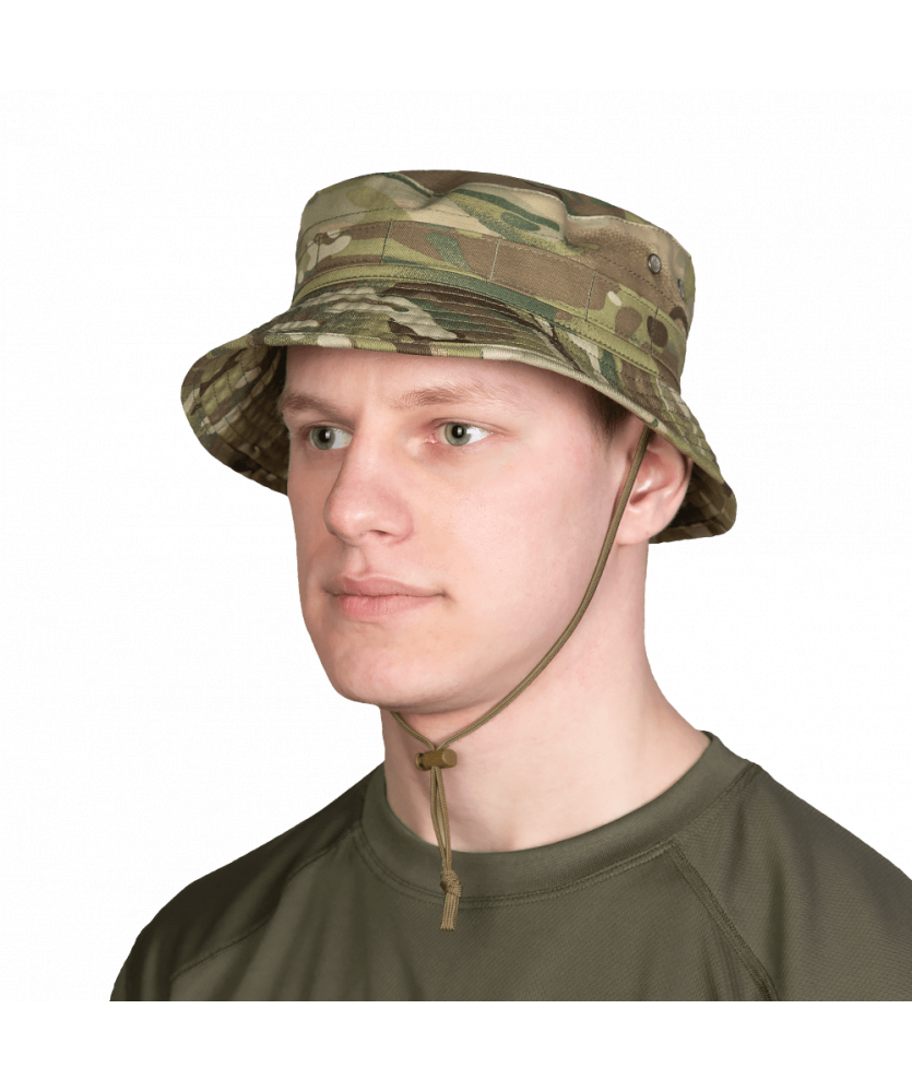 Панама має шнурок для фіксації, який кріпиться з внутрішньої сторони. Сам шнурок регулюється якісним, пластиковим замком-фіксатором. Навколо верхівки капелюха присутня стрічка MOLLE для додаткового обладнання або аксесуарів.