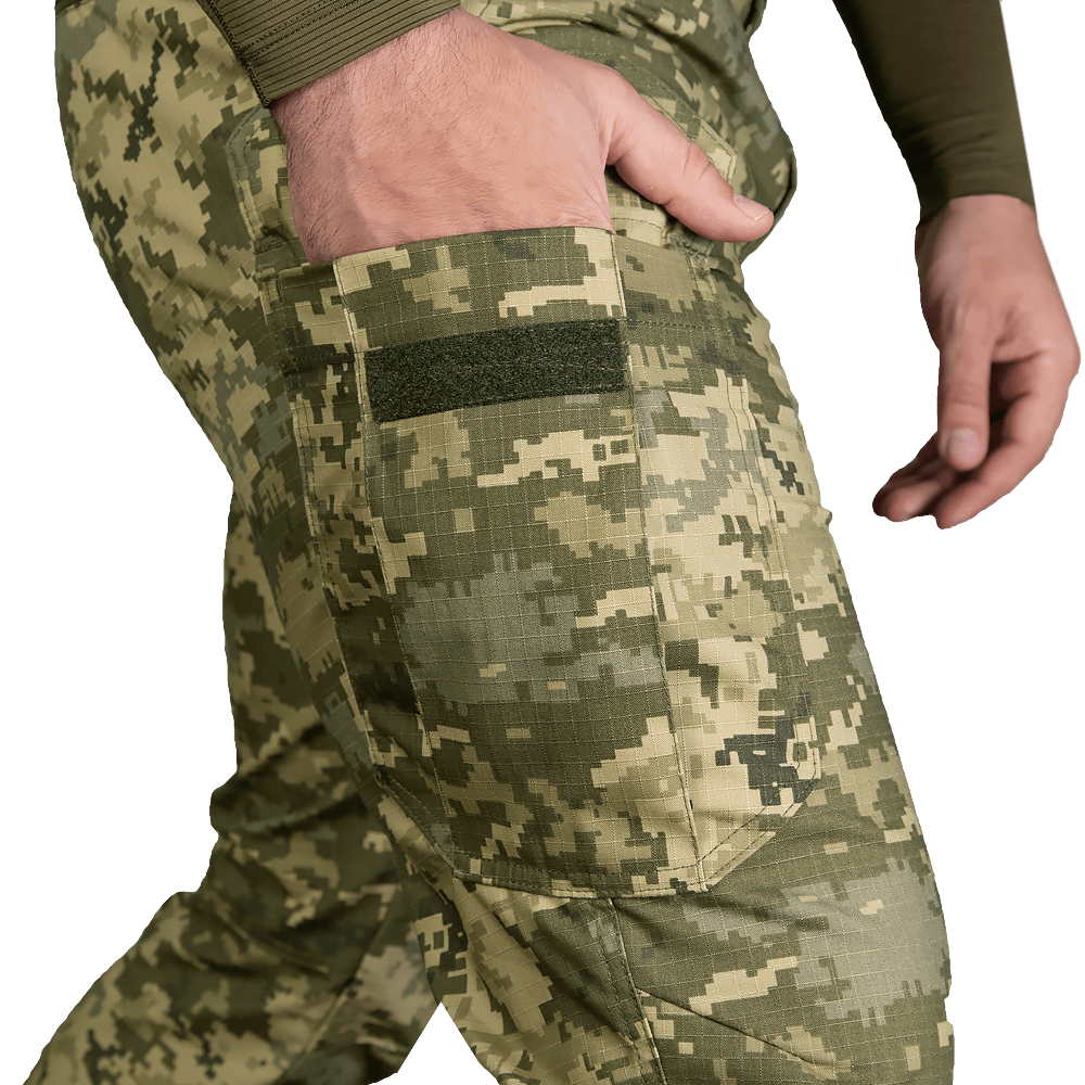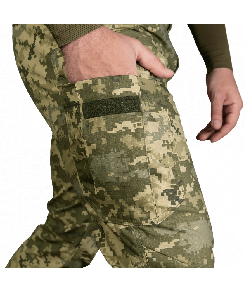В удосконалену модель конструктори додали виточки в зоні колін, для більшого комфорту. Також було додано липучки по низу штанин для регулювання об'єму.