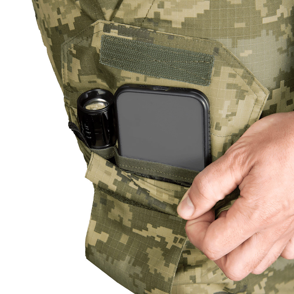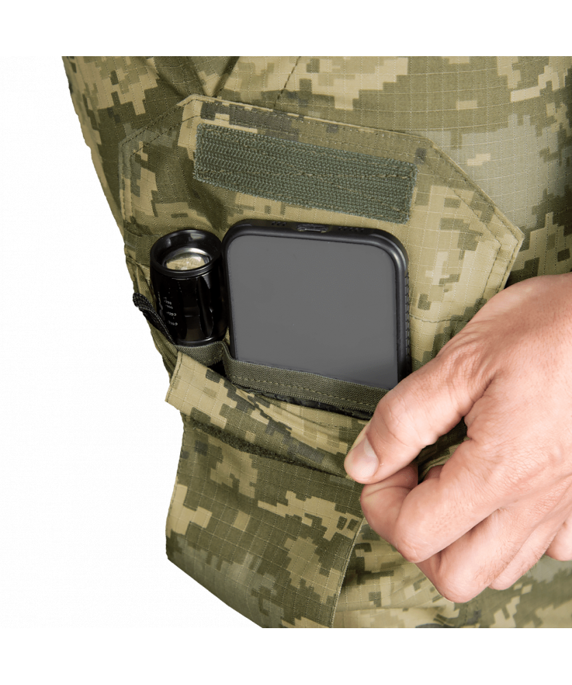 Модель виготовлена з міцної тканини Rip-Stop CVC. Це суміш поліестеру та бавовни. Це армована, зносостійка та гіпоалергенна тканина. Має вражаючі "дихаючі" властивості.