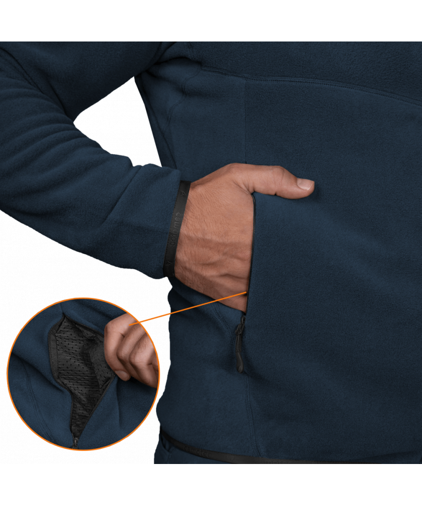 Кофта виконанна з інноваційної, флісової тканини Himatec (Pro series). М’яка та дуже приємна на дотик тканина, затримує дуже багато тепла, при малій вазі. Тканина вироблена з синтетичних волокон, і має гіпоалергенні властивості. Матеріал ефективно зберігає тепло та відводить вологу.