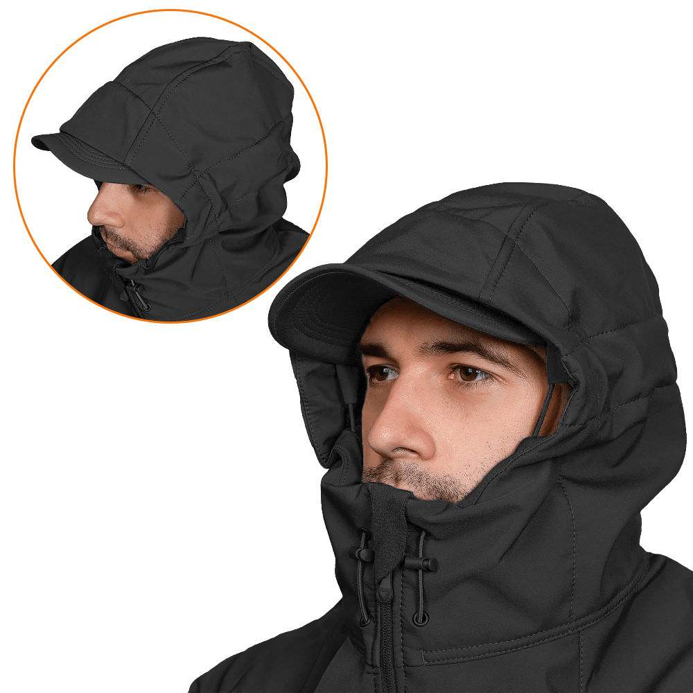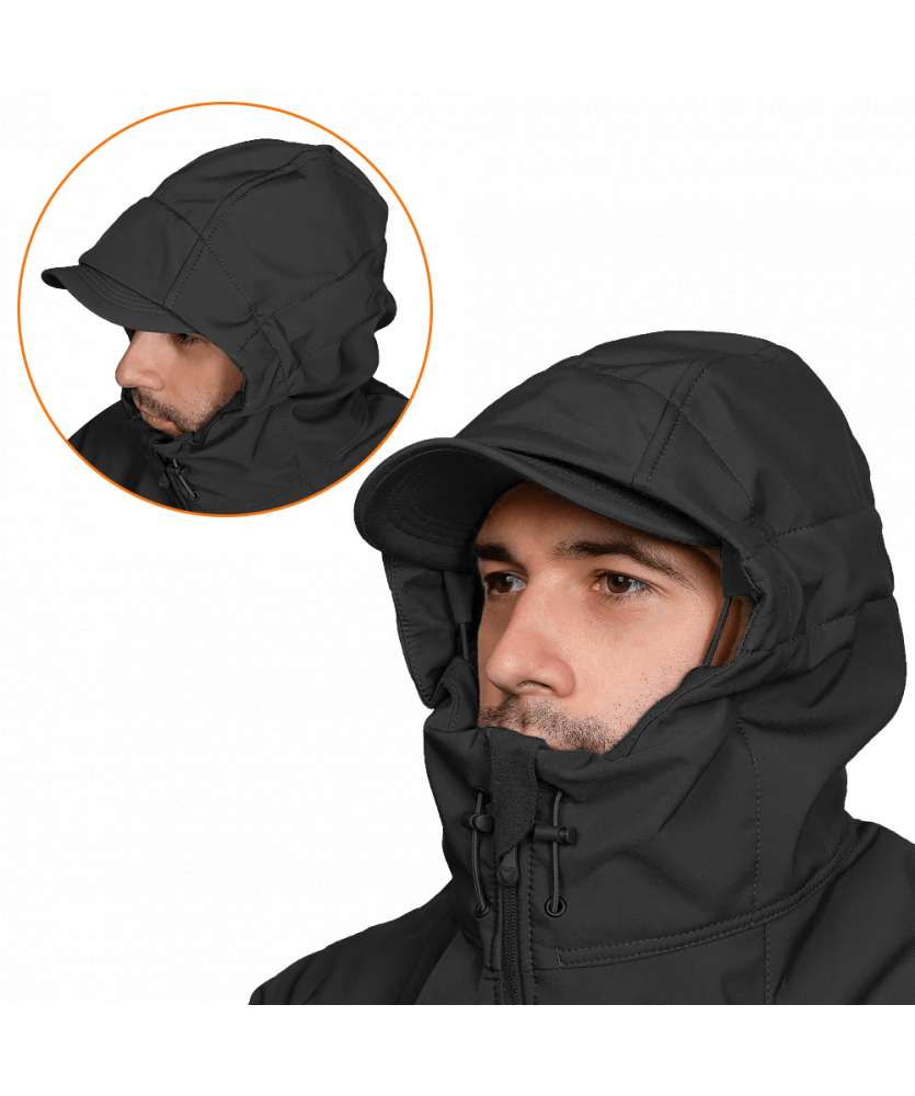 Куртка має ергономічний каптур який не заважає огляду та оснащений захисним піддашком. Регулюється утяжками з пластиковими фіксаторами.