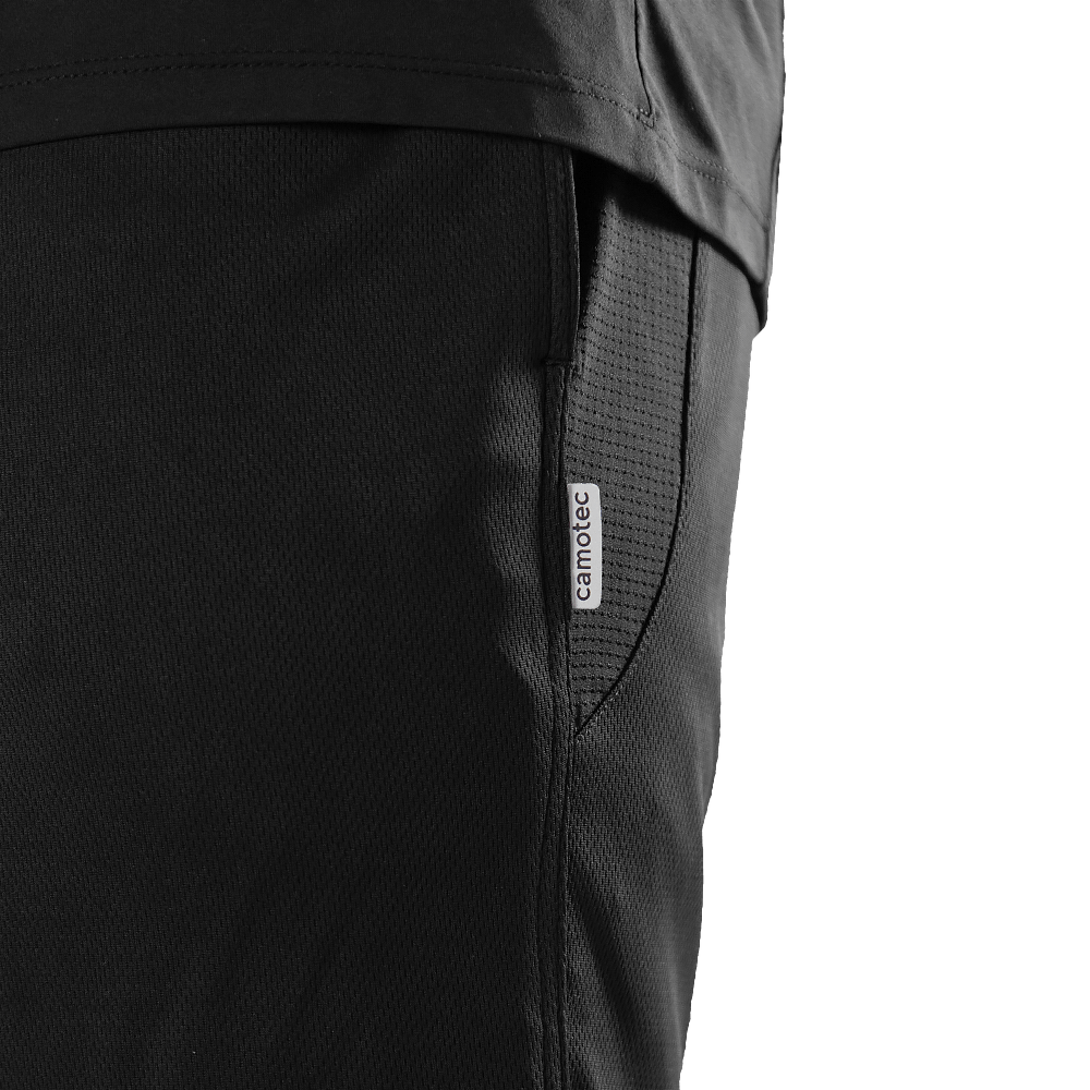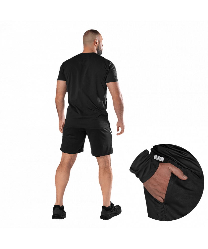 Шорти вироблені з тканини CoolPass Antistatic - тканина була розроблена, щоб відводити вологу від тіла і зберігати його сухим довгий час. Цей фантастичний функціонал досягнуто завдяки високотехнологічній нитці COOLPASS®. Нитка має чотирьох — канальну структуру, і підвищені капілярні властивості, завдяки чому волокна вбирають вологу отриману від тіла, розподіляють її на велику площу, внаслідок чого здійснюється найшвидше її випаровування. Також в структуру тканини вбудована спеціальна антистатична нитка, яка збирає статичний заряд і перешкоджає його накопиченню.