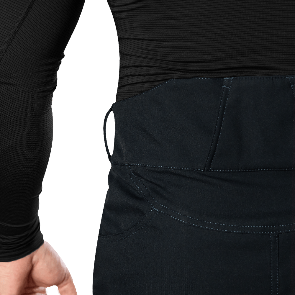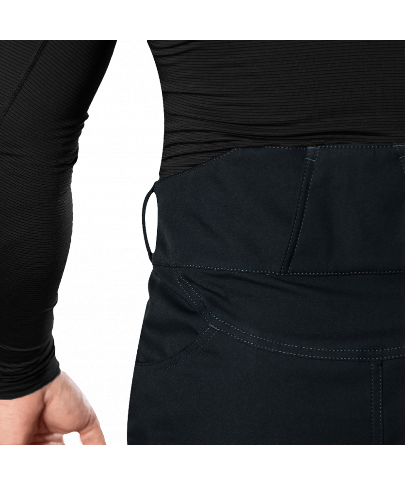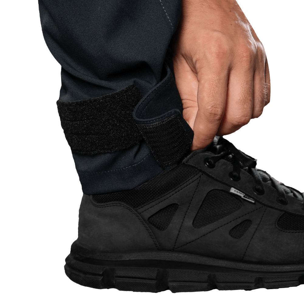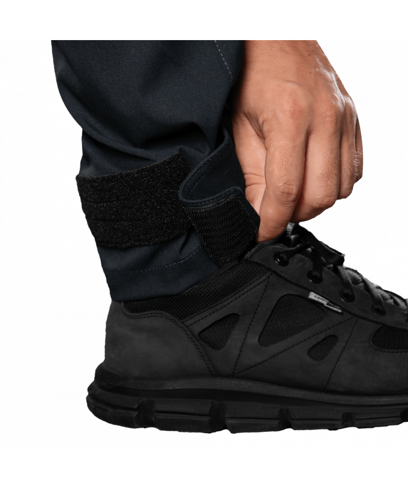 Штани з завищеним поясом та конструктивними виточками в зоні колін і сідла, для більшої рухливості та зносостійкості виробу. Мають дві кишені спереду, та дві місткі, врізні кишені по боках. Фіксуються на застібку-блискавку, а знизу на липучки.