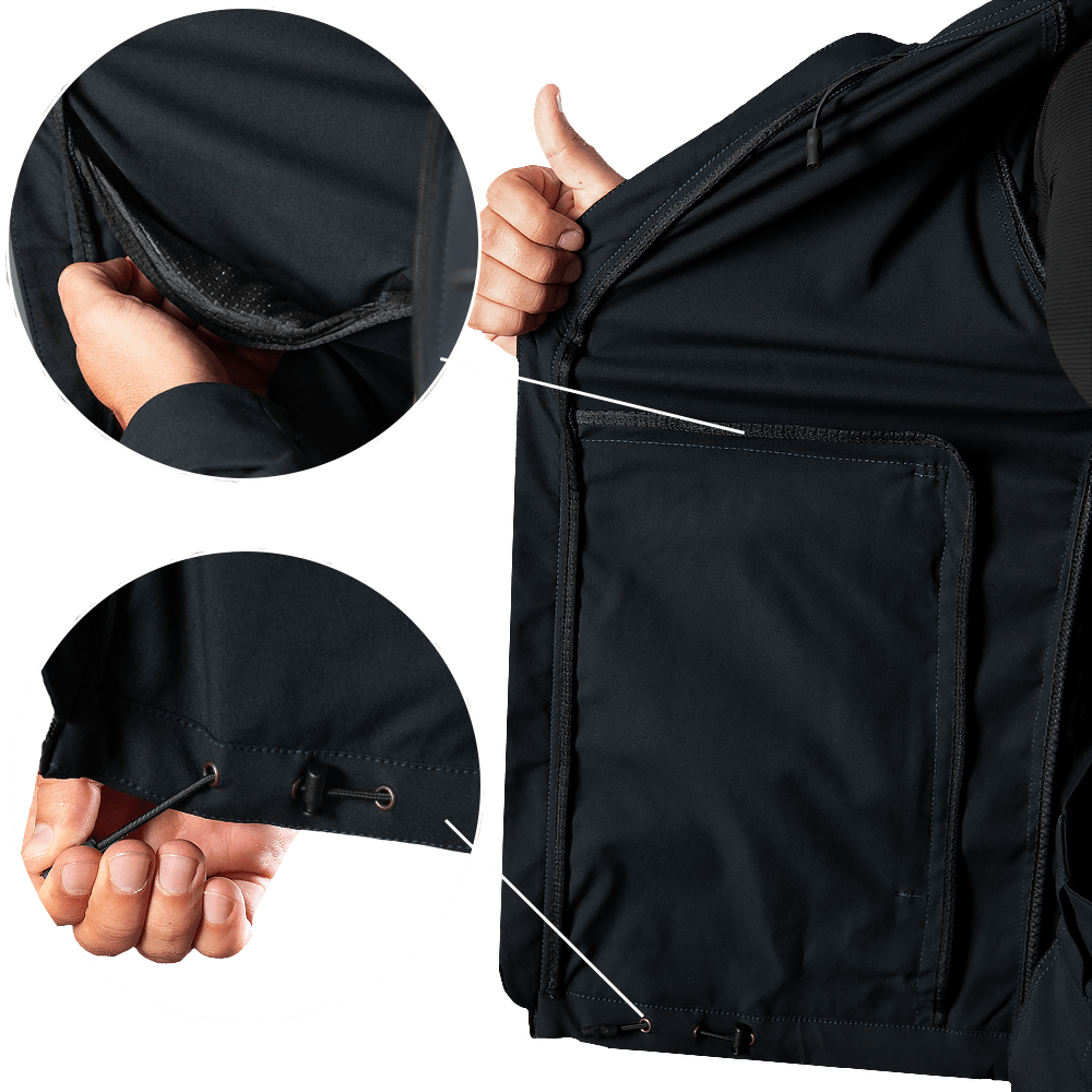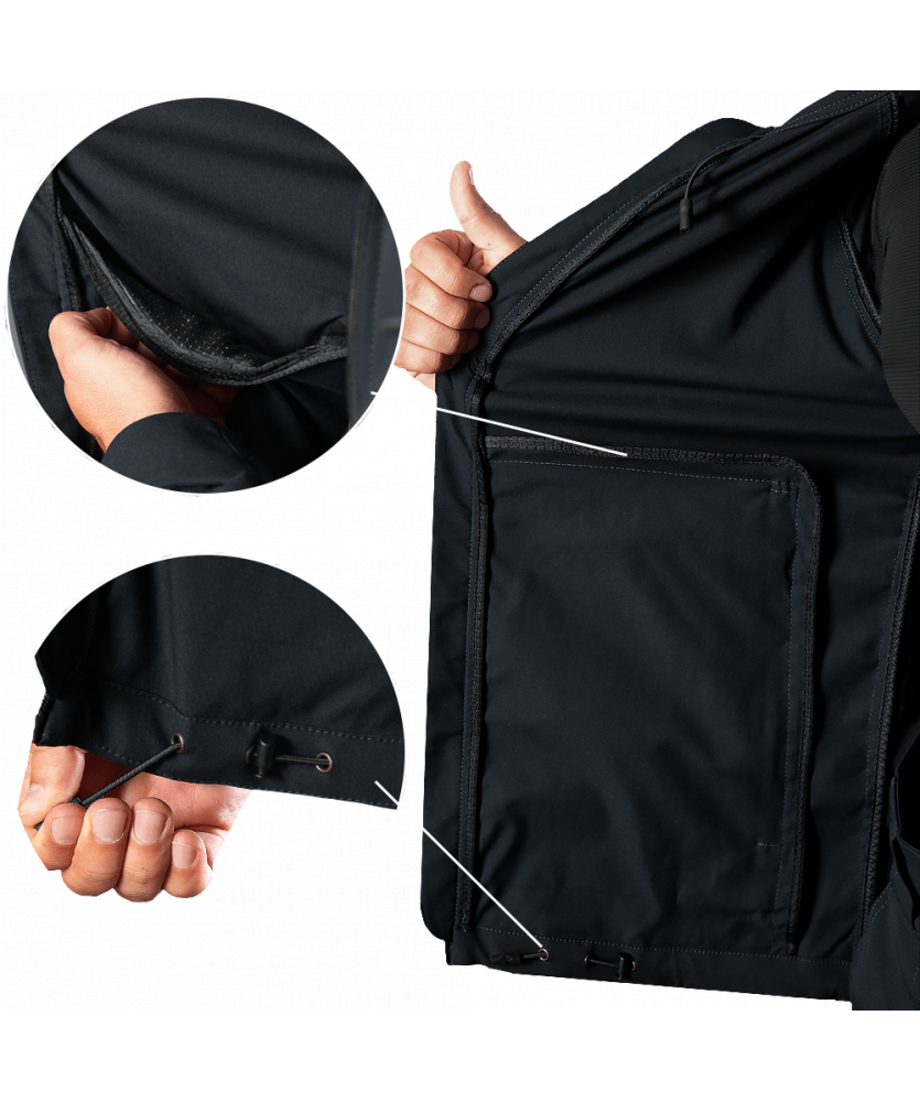 Куртка з каптуром має дві містких кишені спереду і дві кишені на рукавах, під липучками для патчів або шевронів. Усі застібки-блискавки мають пулери для роботи з ними в рукавичках. Комір завищений та має захист від защеплення підборіддя. По низу куртки є спеціальні утяжки з пластиковими фіксаторами для регулювання фіксації. Об’єм рукавів регулюється і фіксується липучками.