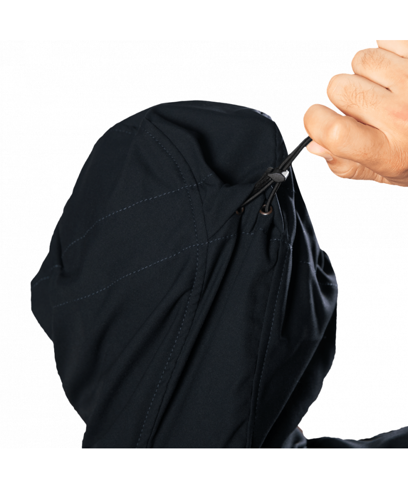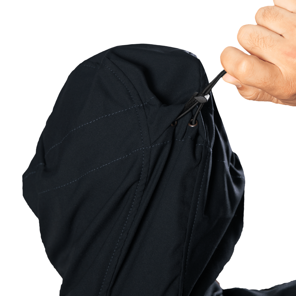 Каптур з піддашком, має утяжки з пластиковими фіксаторами для регулювання об’єму та глибини.