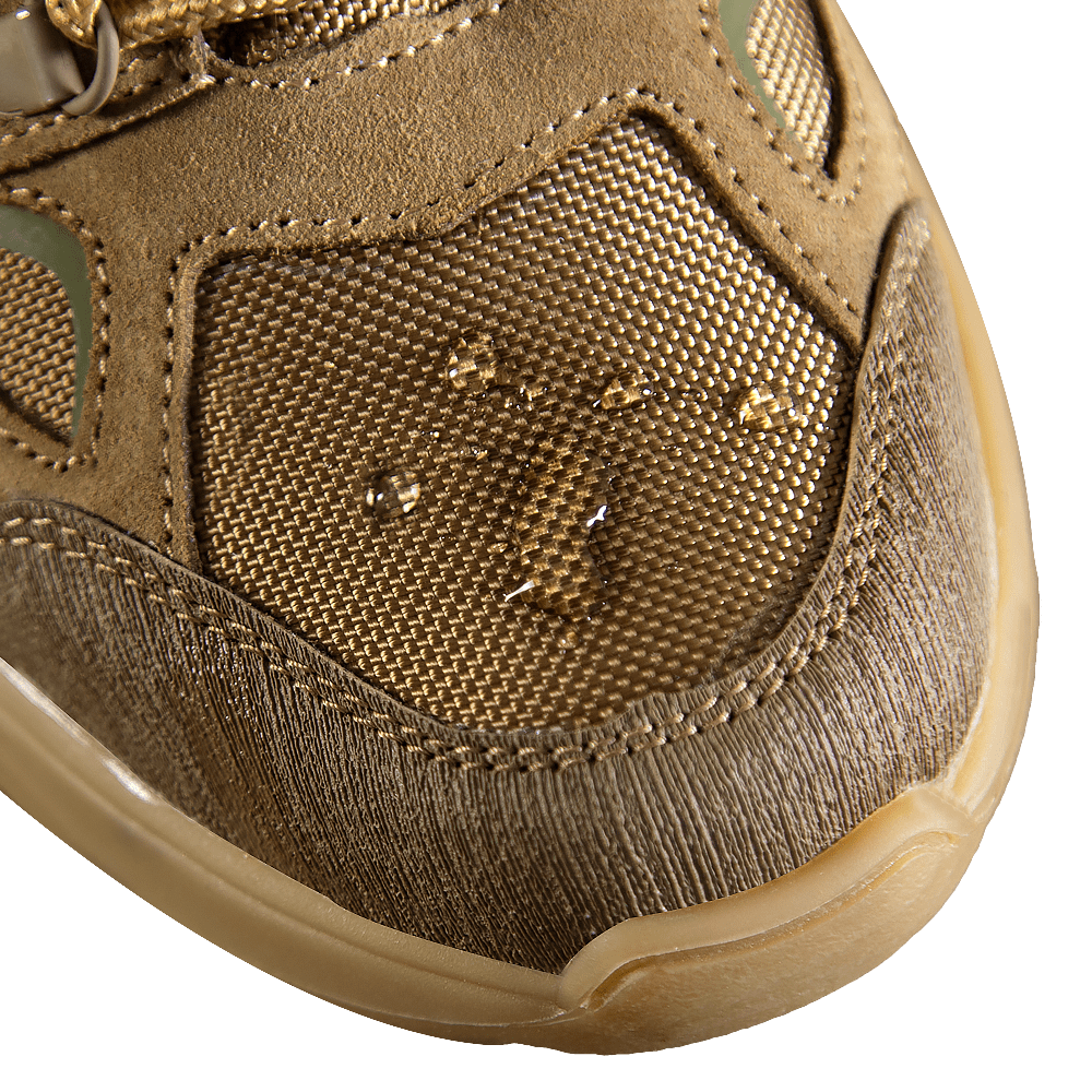 Вставки черевиків зроблені з міцної кардури, покритої гідрофобним просоченням для захисту від вологи.