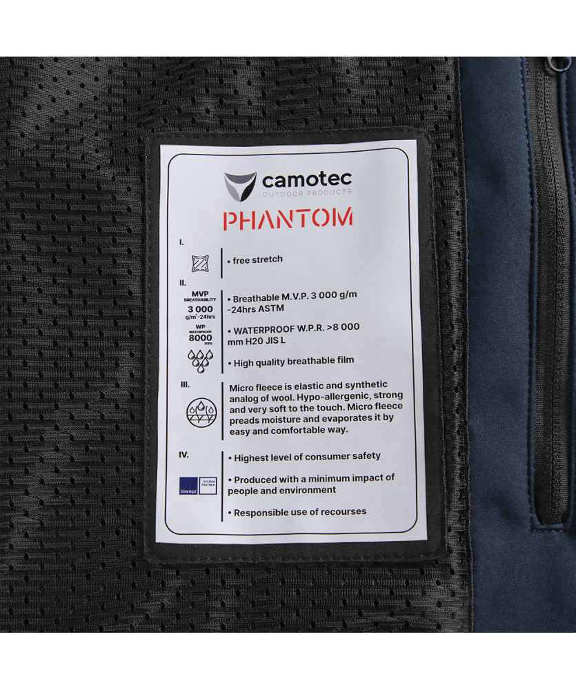 Комплект вироблено з оригінальної тканини SoftShell зі справжньою мембраною. Головною перевагою цього матеріалу є ідеальне утримання балансу між захистом від холоду, вологи й хорошою циркуляцією повітря.