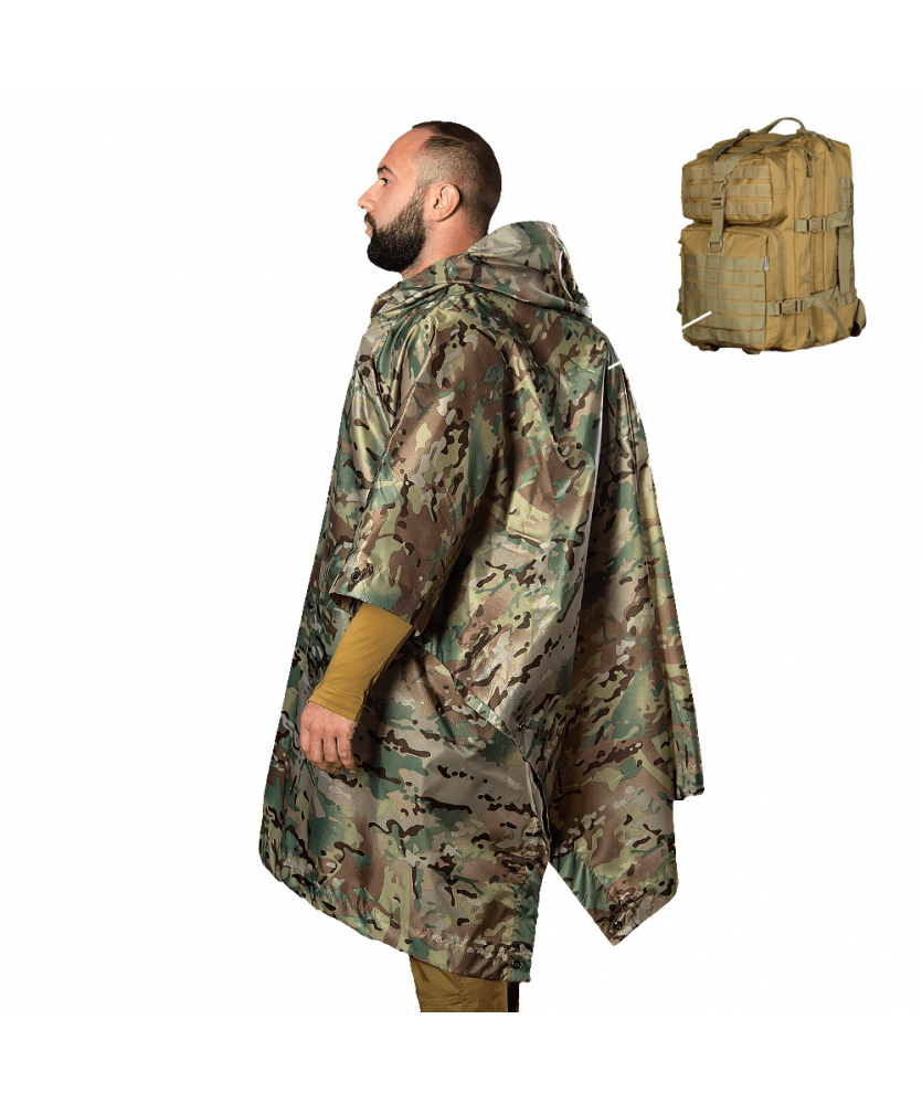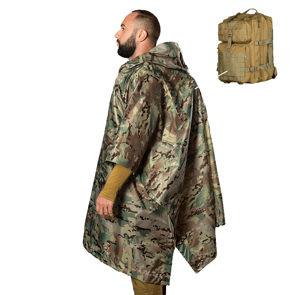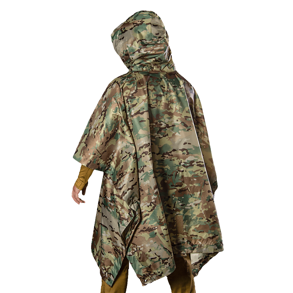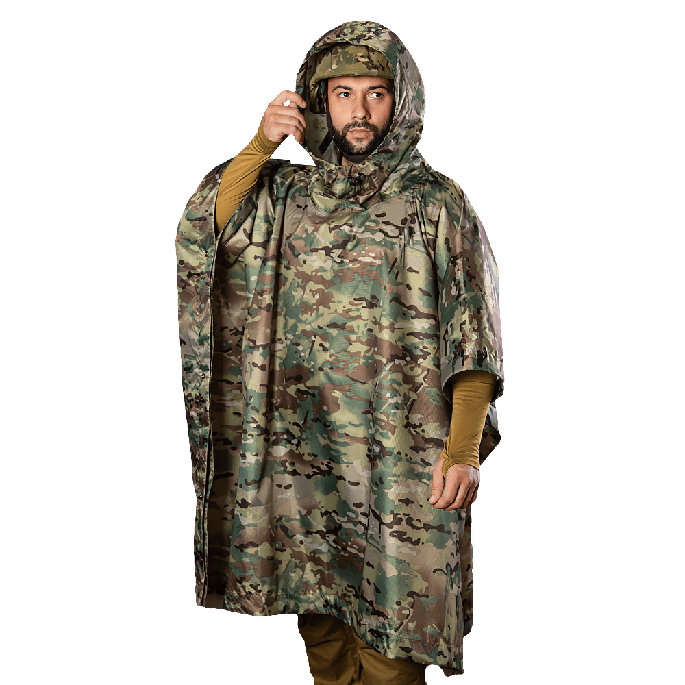 Універсальне, функціональне пончо яке можна використовувати як дощовик, тент, або плащ-намет, а завдяки спеціальним, металевим люверсам по краях, дозволяє об’єднувати декілька виробів і робити повноцінні намети.