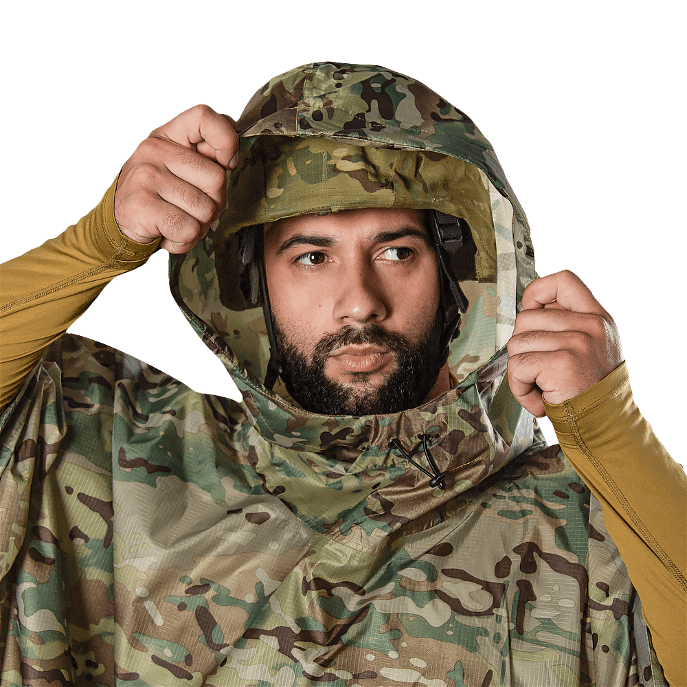 У версії 2.0 було розширено горловину та каптур, що дозволяє зручно одягати пончо поверх шолома, не обмежуючи огляд.