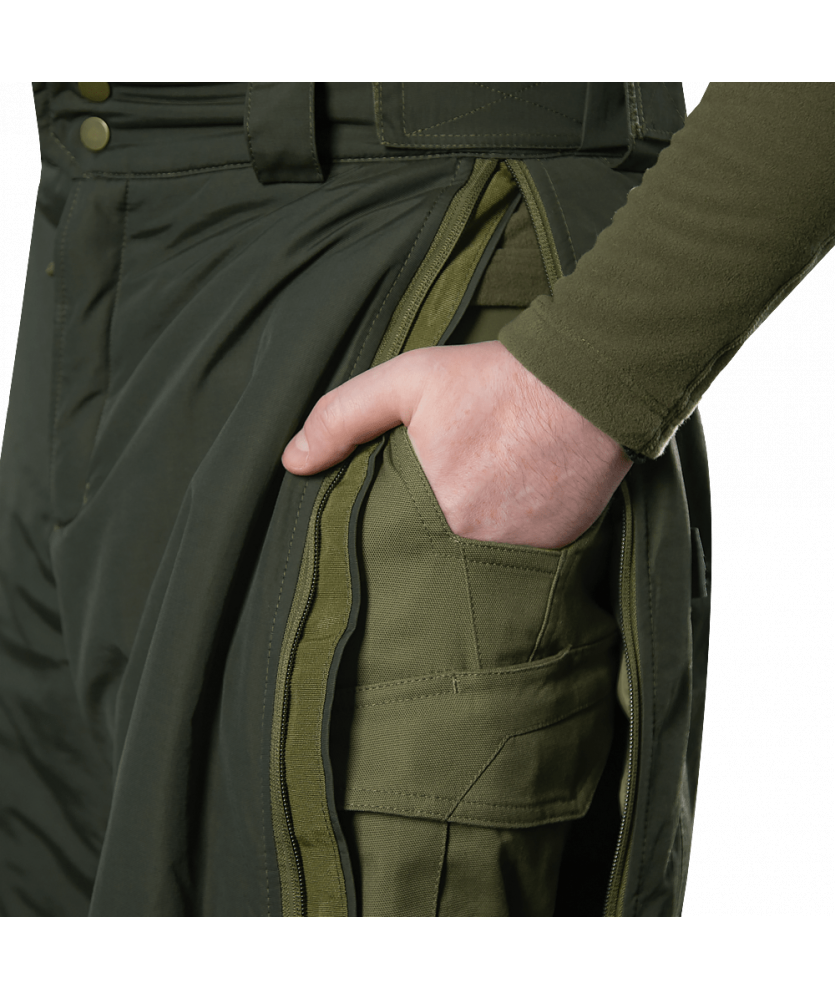 Дані штани передбачають одягання поверх основних формених штанів. Тому, однією з особливостей наших штанів є система швидкого зняття та одягання штанів завдяки боковим змійкам по всій довжині, які дозволяють швидко вдягнути або зняти штани, а також швидко отримати доступ до внутрішніх кишень. Також вони оснащені пулерами, які дозволяють працювати з ними навіть в рукавичках.