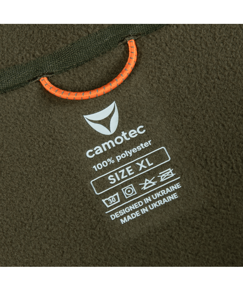 Кофта виконанна з інноваційної, флісової тканини Himatec(100 series). М’яка та дуже приємна на дотик тканина, затримує дуже багато тепла, при малій вазі. Тканина вироблена з синтетичних волокон, і має гіпоалергенні властивості. Матеріал ефективно зберігає тепло та відводить вологу.