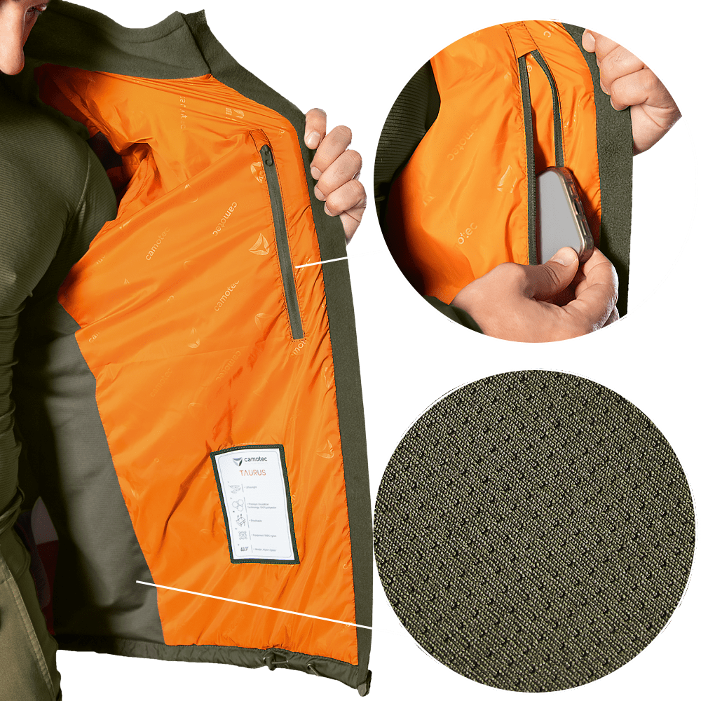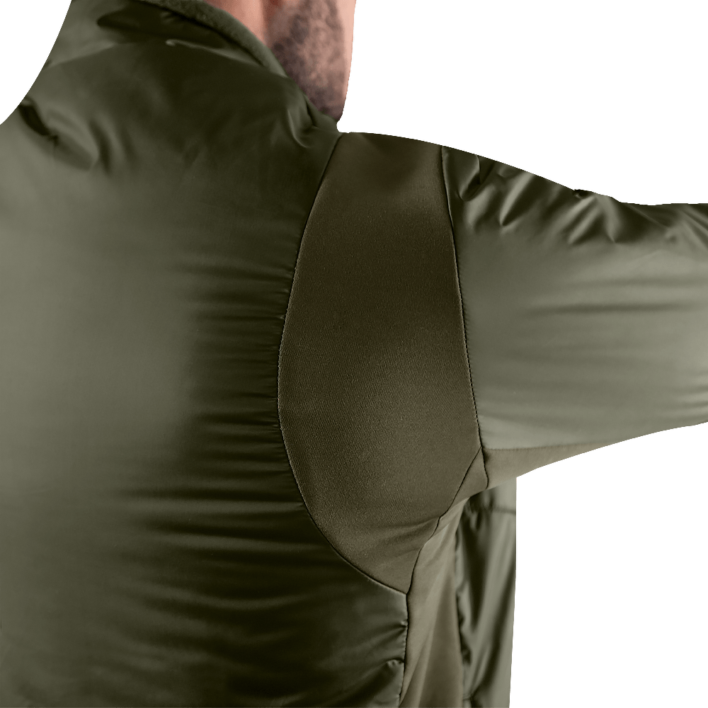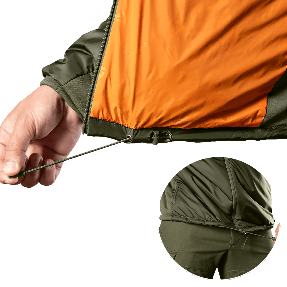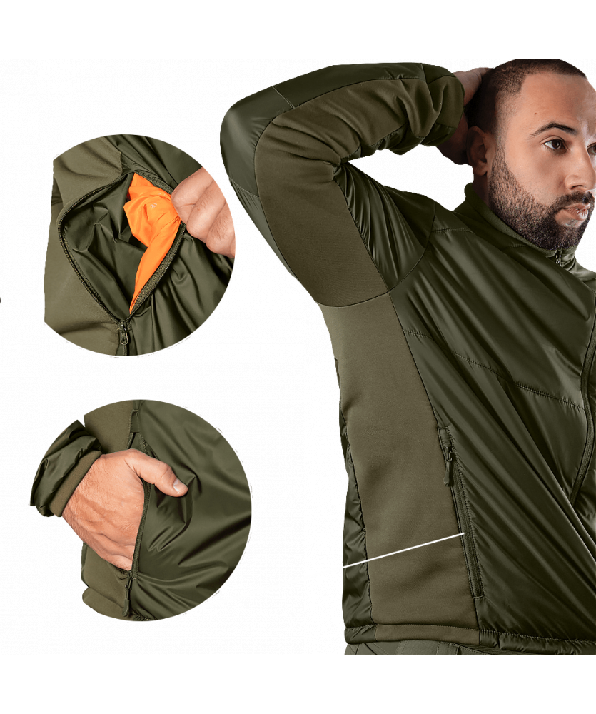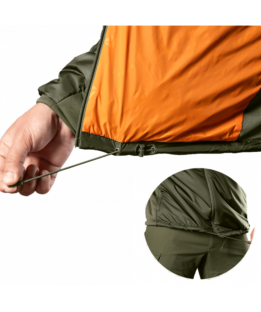 Вставки вироблені з Himatec Air Stretch. Це легка, інноваційна, флісова тканина, що оберігає від перегріву та подальшого переохолодження. Завдяки фактурі тканини утворюються повітряні прошарки, які забезпечують додаткове утримання тепла. Ззовні тканина має гладку поверхню.