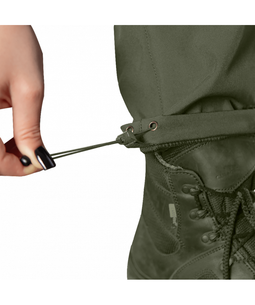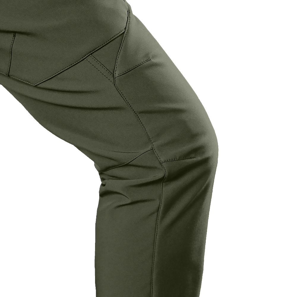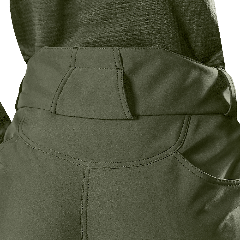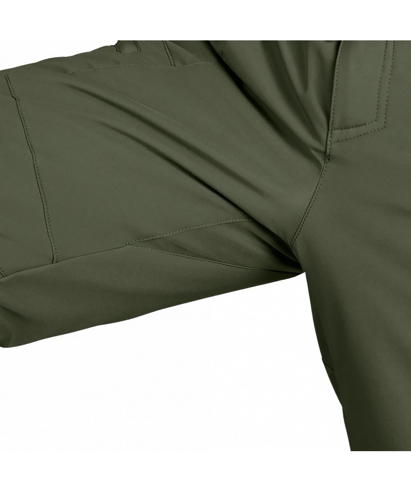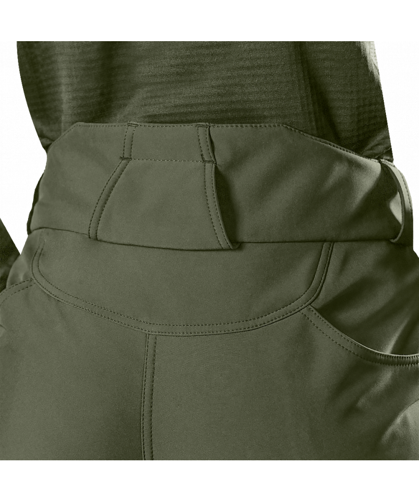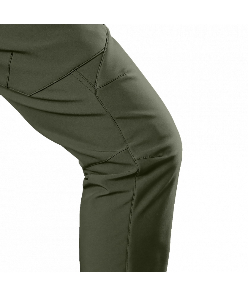 Штани вироблені з оригінальної тканини SoftShell. Це легка, сучасна тканина зі справжньою безпоровою мембраною, яка складається з трьох шарів: мікрофліс який зберігає тепло; мембрана що захищає від вітру та вологи; еластичний поліестер із вологостійким просоченням, який захищає від пилу, бруду й вологи.