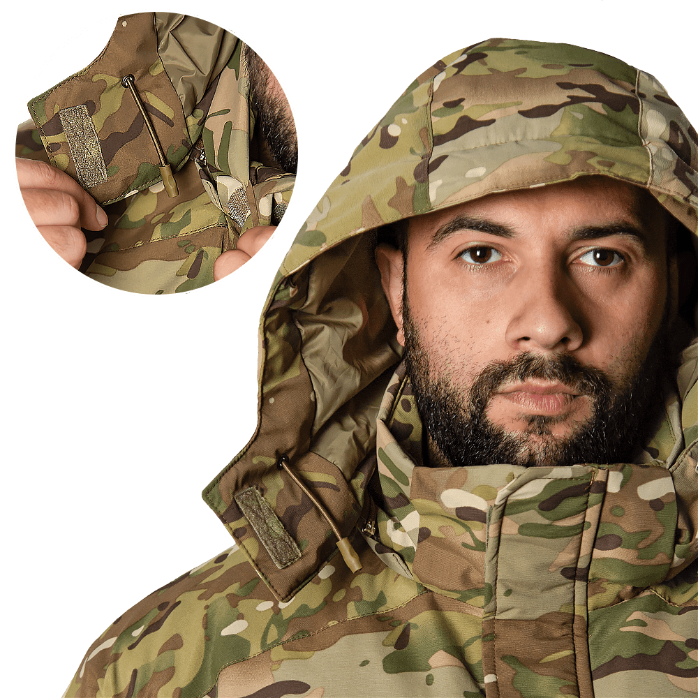 Куртка оснащена з’ємним утепленим каптуром із піддашком, який легко регулюється по всіх параметрах, що дозволяє налаштувати його для будь-яких погодних умов.