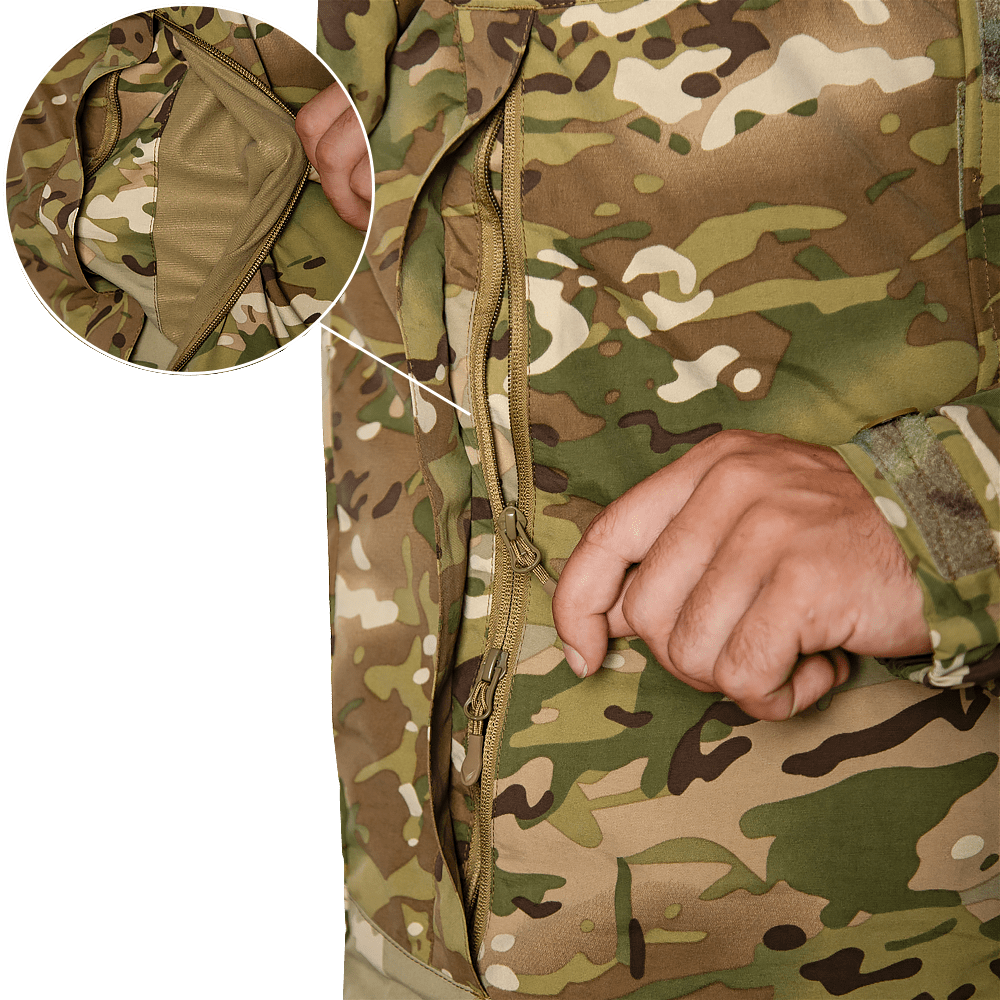 На рукавах та грудях розташовані липучки для кріплення патчів та шевронів.