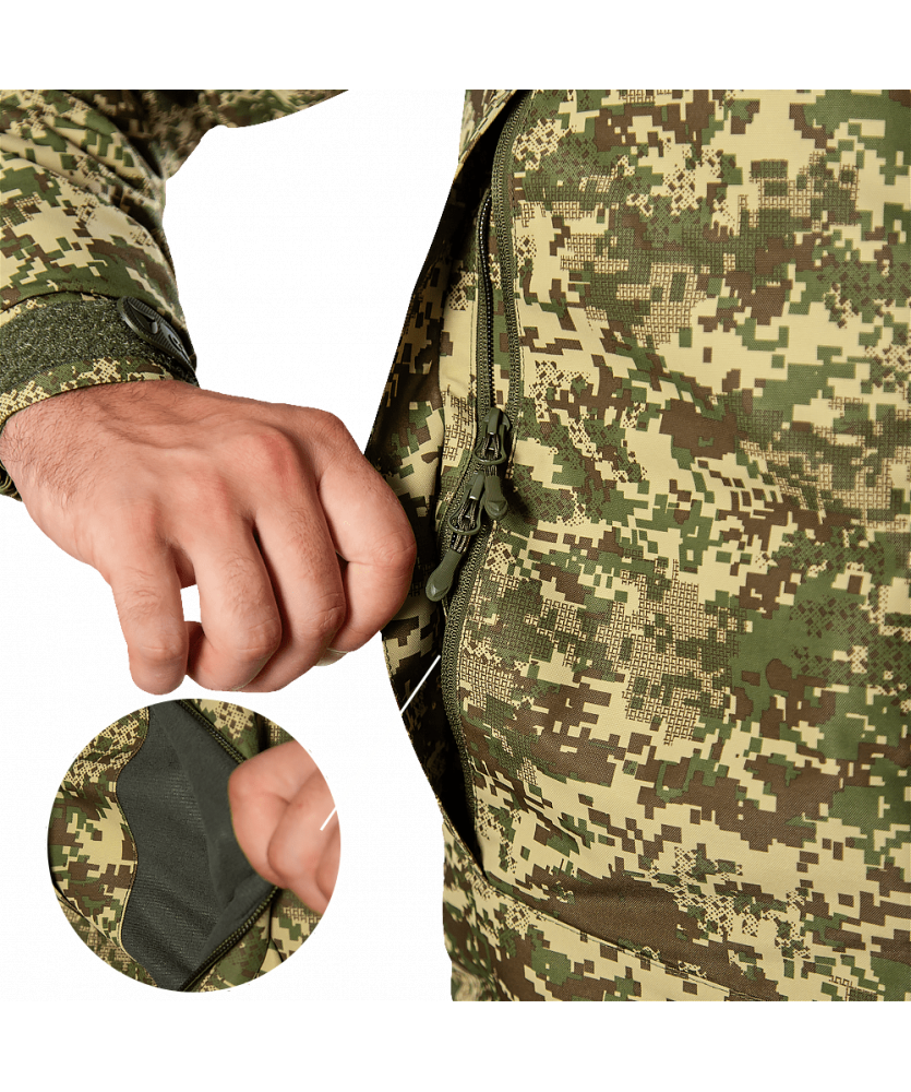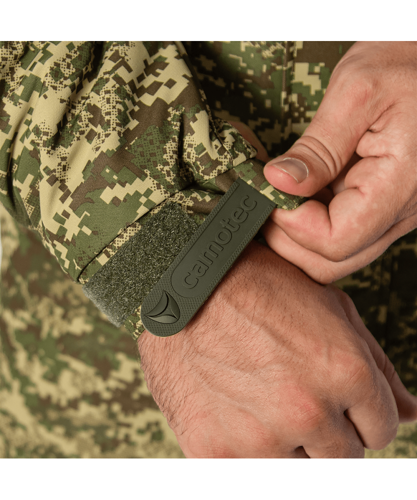 На рукавах та грудях розташовані липучки для кріплення патчів та шевронів.