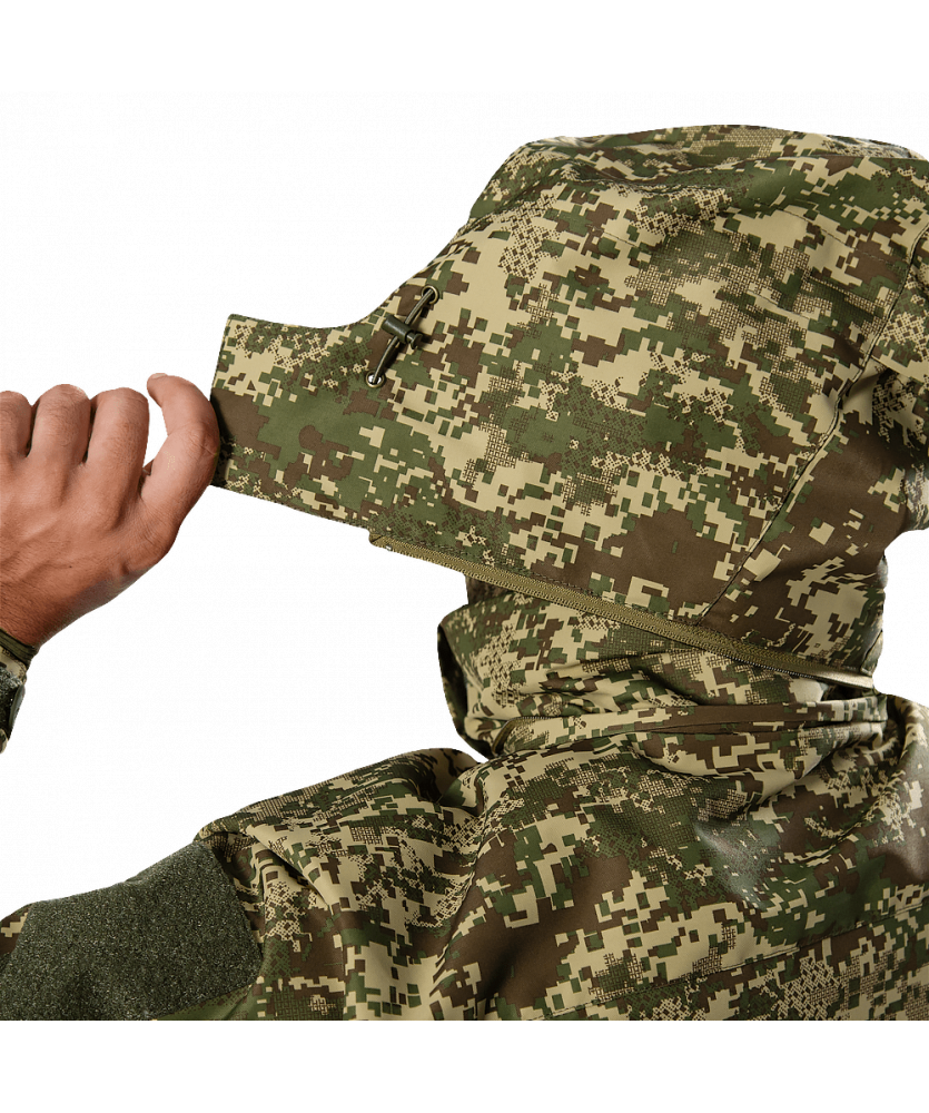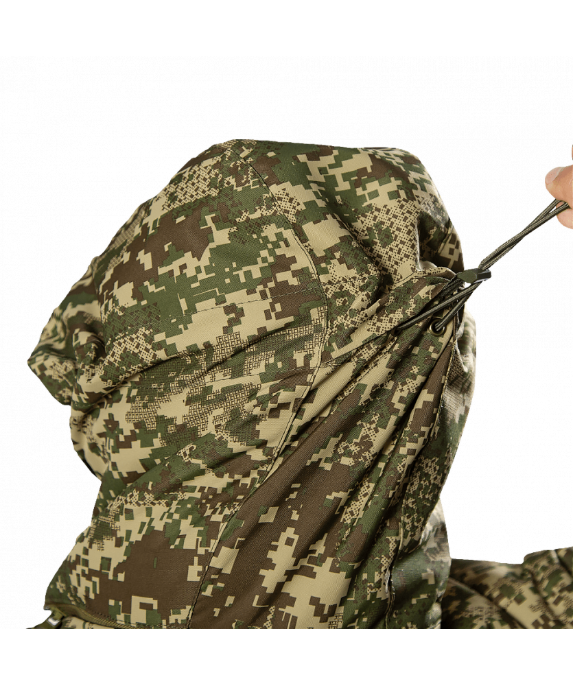 Манжети регулюються липучками, а низ куртки оснащений утяжками з пластиковими фіксаторами для додаткової герметичності. Центральна блискавка прикрита планкою на липучках, яка захищає від продування та проникнення вологи.