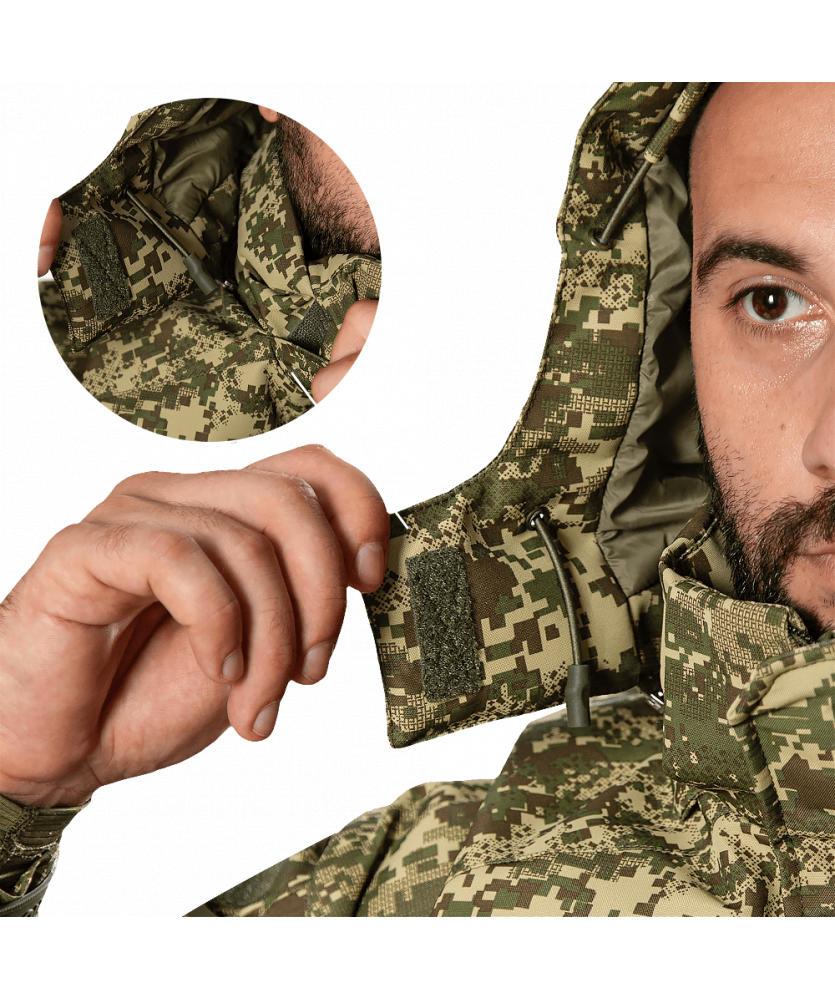 Куртка оснащена з’ємним утепленим каптуром із піддашком, який легко регулюється по всіх параметрах, що дозволяє налаштувати його для будь-яких погодних умов.