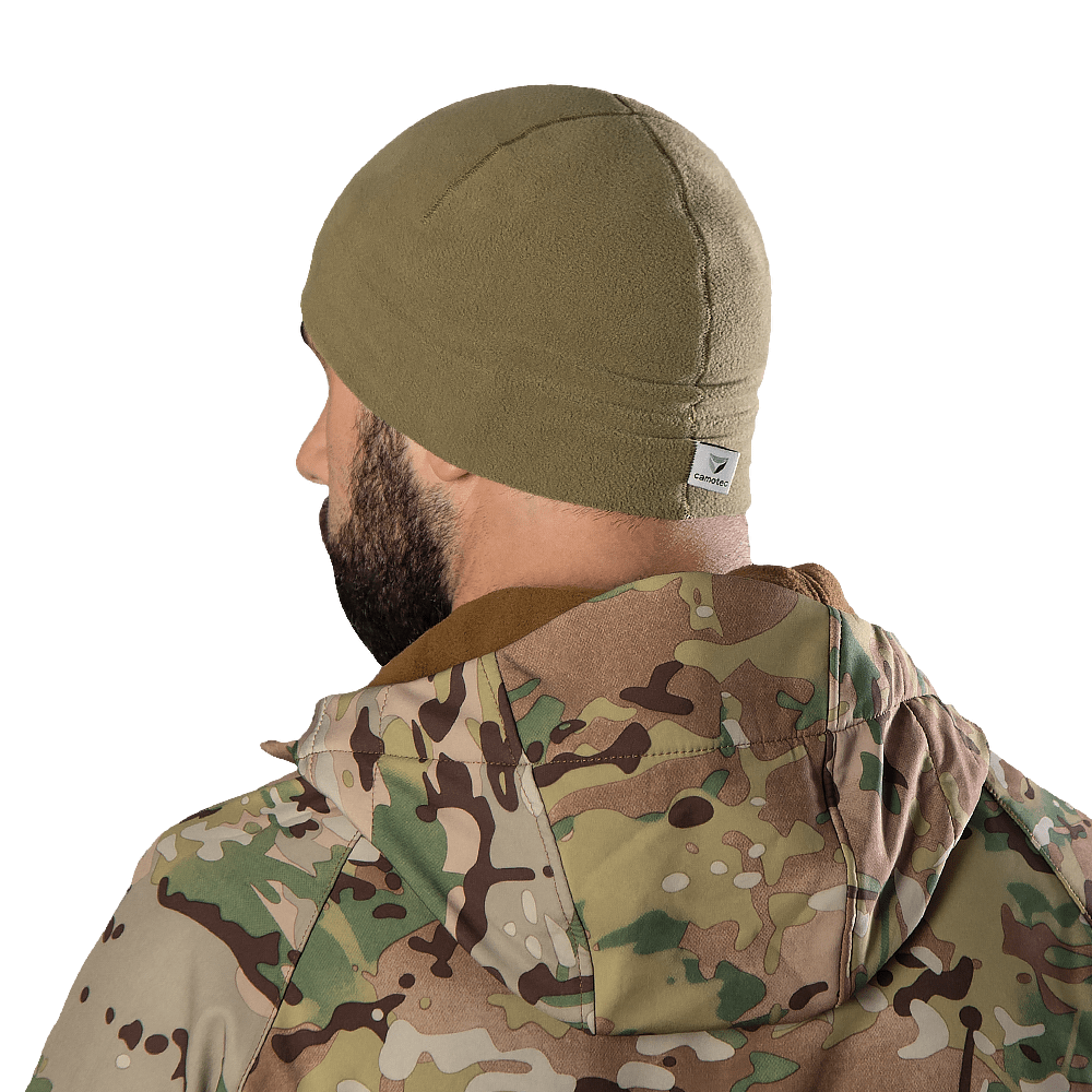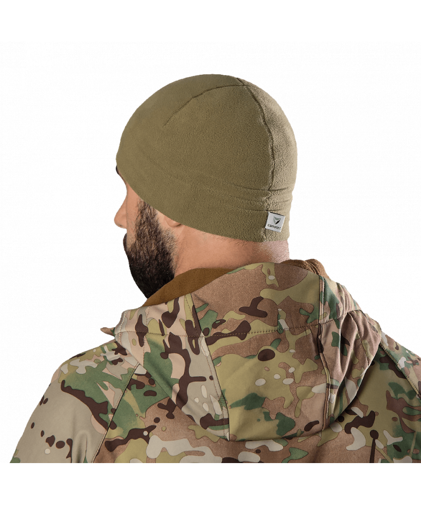 Шапка вироблена з нової серії флісу Himatec (100 series) - пухка та дуже приємна на дотик тканина, яка затримує дуже багато тепла, при малій вазі. За рахунок фактури тканини утворюються повітряні прошарки, які забезпечують ефективне утримання тепла. Тканина добре дихає, відводить вологу, швидко сохне, а також має антибактеріальне просочення що запобігає утворенню та розповсюдженню бактерій.