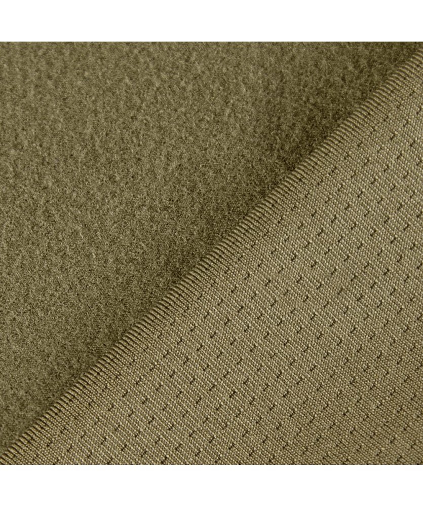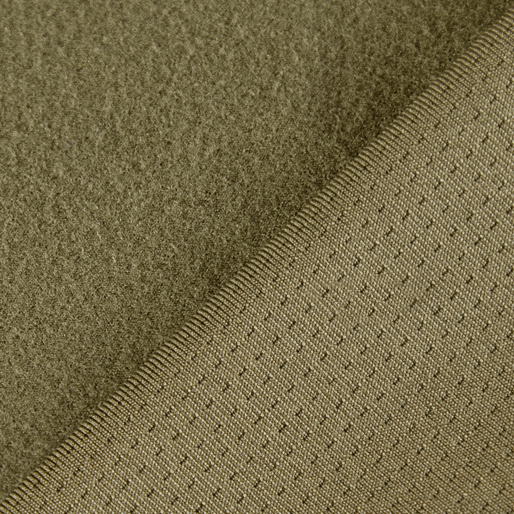 Тканина має тонке плетіння, що робить її майже непомітною на тілі, забезпечуючи повну свободу рухів. Зовнішня сторона оснащена мікроотворами, які покращують вентиляцію та забезпечують безперервну циркуляцію повітря, а внутрішня сторона оброблена технологією Brush (начіс), що надає матеріалу м’якості та зберігає тепло, роблячи її особливо приємною на дотик.