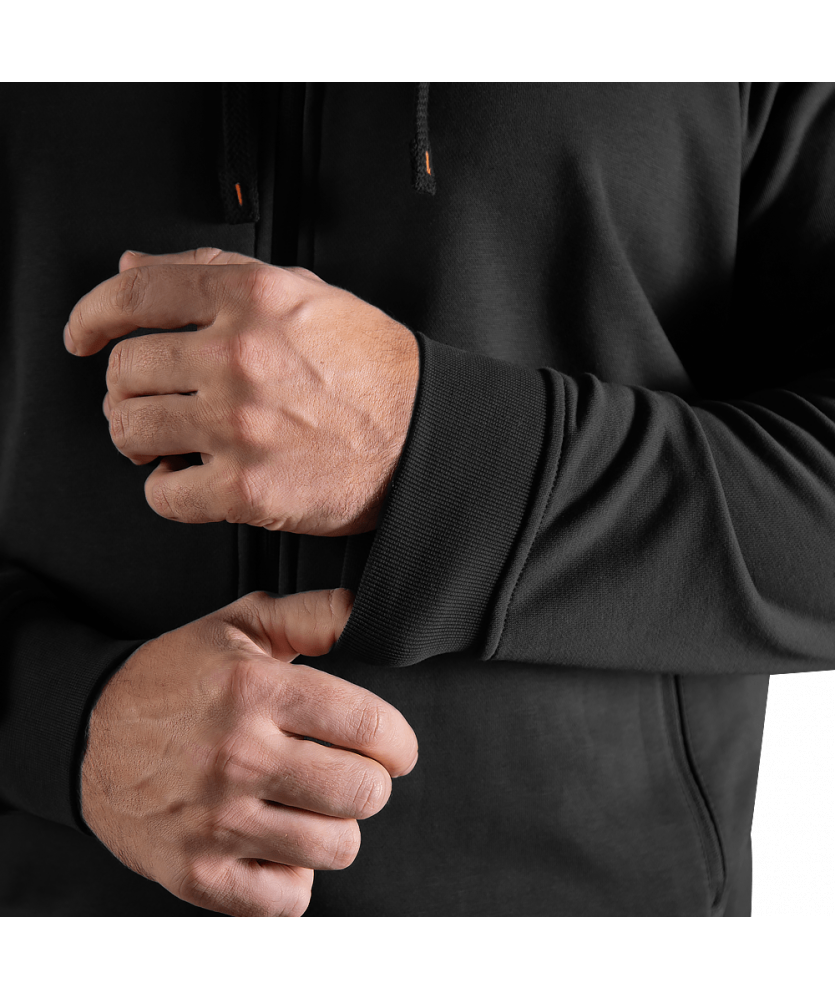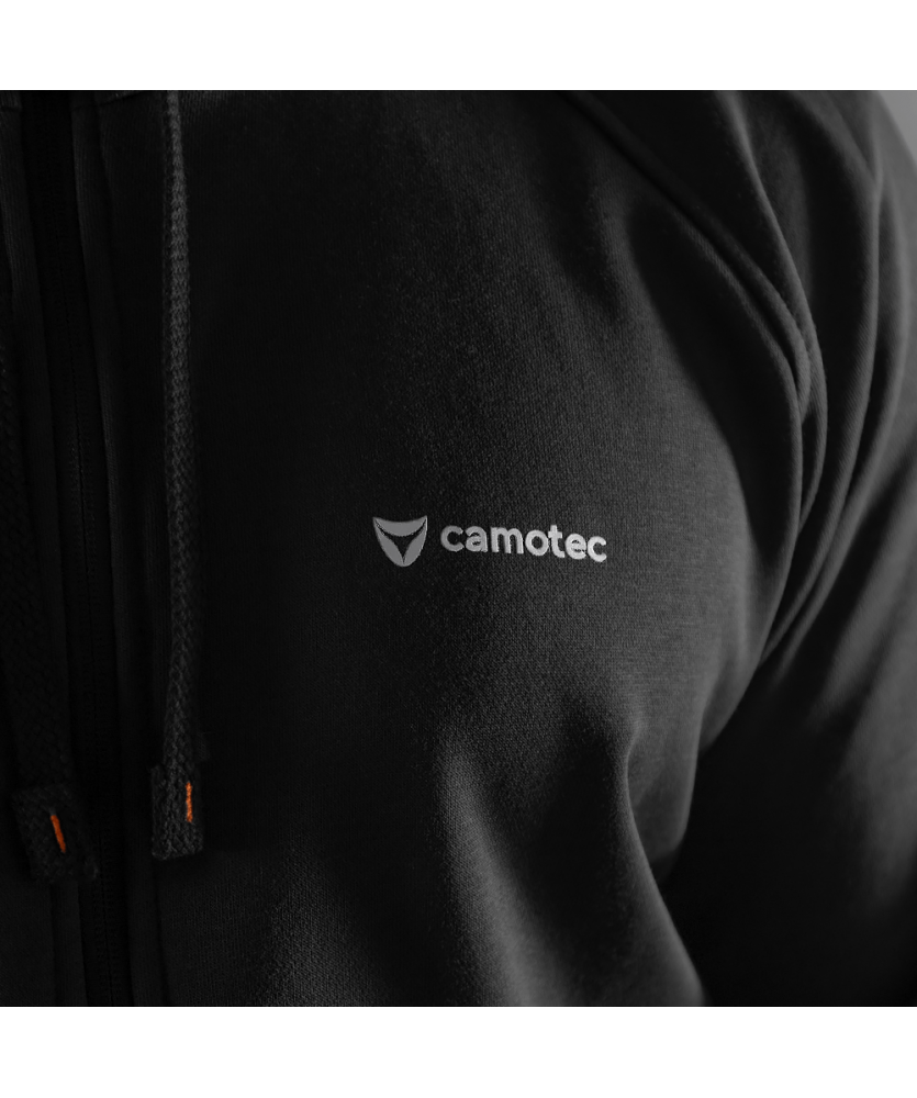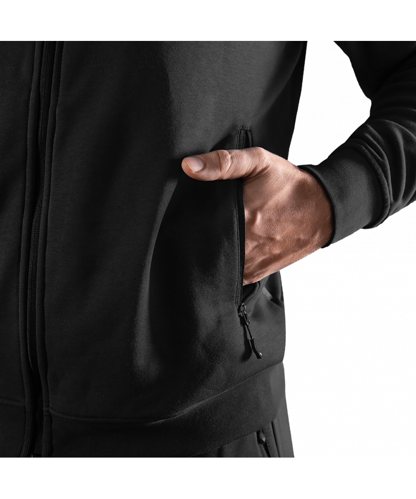 Кофта на блискавці розроблена, щоб забезпечити комфортну посадку і свободу рухів. Рукава виконані в стилі реглан, що робить їх зручними навіть під час інтенсивних занять. Каптур із шнурком-утяжкою дозволяє регулювати об’єм для захисту від вітру. Дві бічні кишені з блискавками та мають всередині додаткову кишеню для дрібних речей. А пулери на застібках додають зручності, дозволяючи користуватися блискавками навіть у рукавичках.