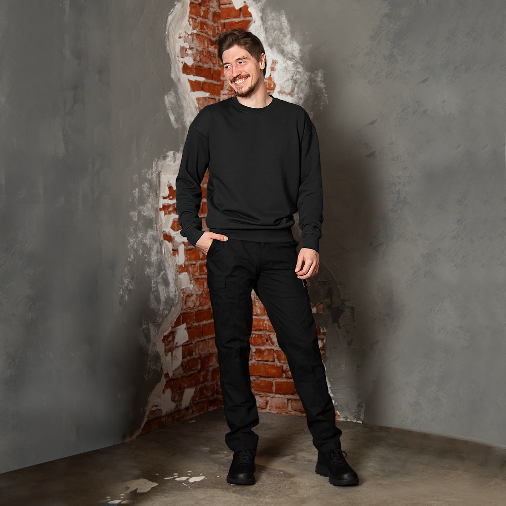 Кофту вироблено з натуральної бавовни у плетінні "тринитка". Тканина має високі дихаючі та зносостійкі властивості, що дає змогу комфортно носити її восени, навесні та в літню пору року. Тканина легка і приємна до тіла, а головне - не викликає алергічних реакцій.