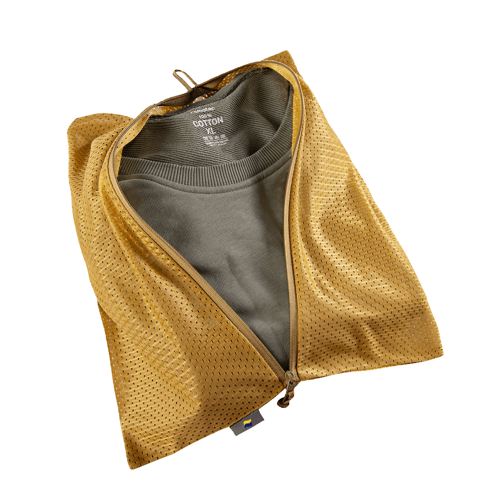 Виготовлений із легкого та міцного поліестеру, він має перфоровану структуру, що забезпечує оптимальну вентиляцію та не дозволяє речам накопичувати вологу та запахи.
