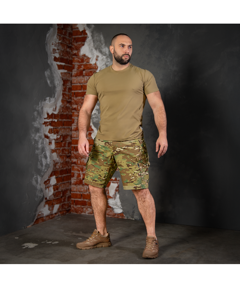 Шорти вироблені з тканини англійський Twill або “британка”. Це суміш поліестеру та бавовни, з додаванням армованої нитки, що робить її дуже міцною і стійкою до розривів. Сама тканина досить легка і має високі “дихаючі” властивості.