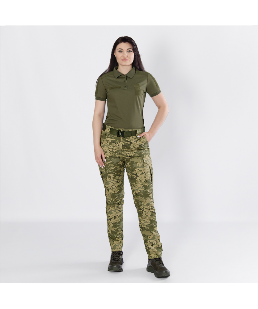 Поло вироблено спеціально для жінок які працюють в охоронних та воєнізованих структурах, з урахуванням жіночої анатомії.