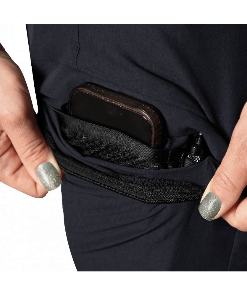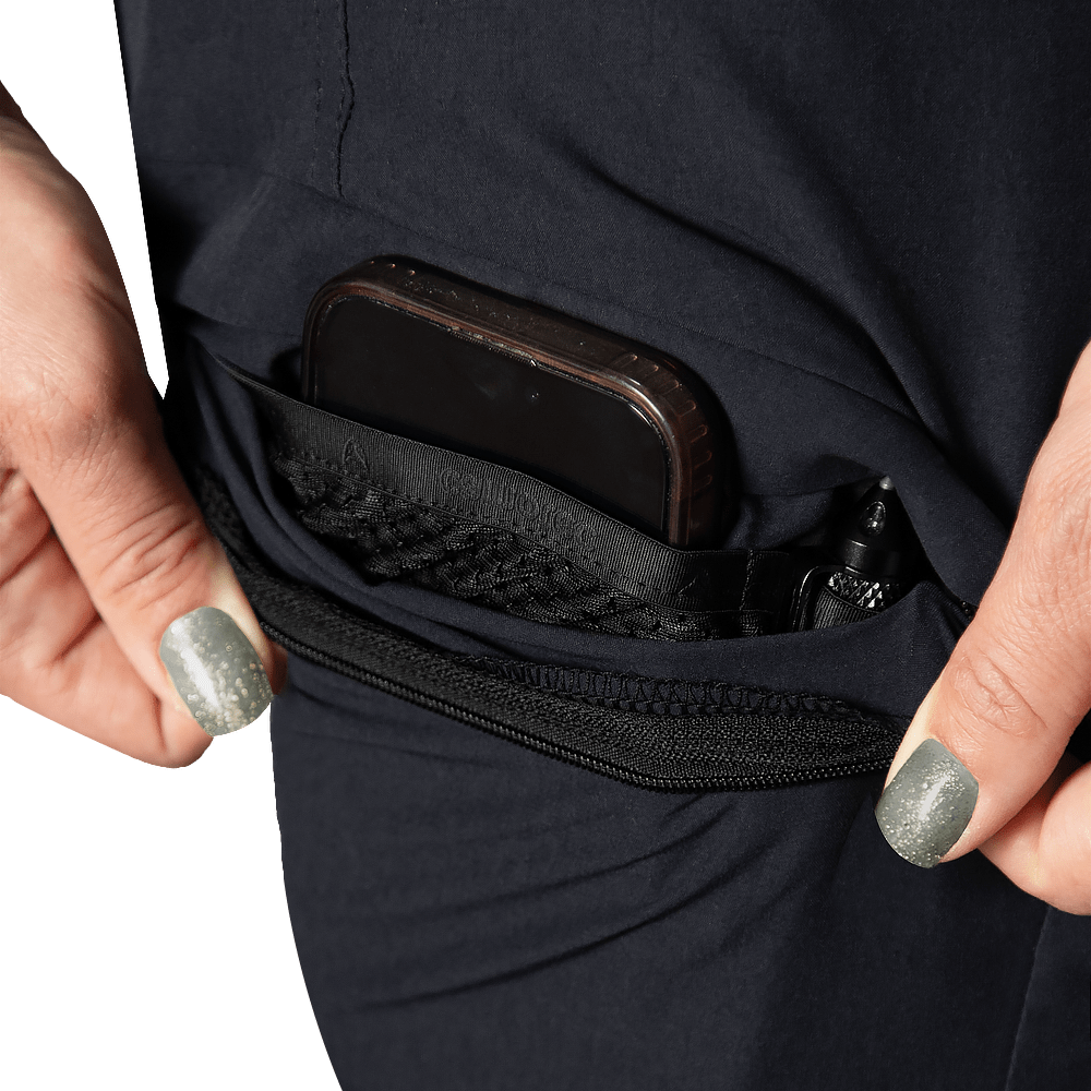 Штани мають шість кишень: дві бокові з вентиляційними сітками дві задні з вентиляційними сітками, дві на стегнах із блискавкою та клапаном. Всередині великих кишень на стегнах є по дві маленькі із сітки, щоб зафіксувати дрібні речі на кшталт ключів.