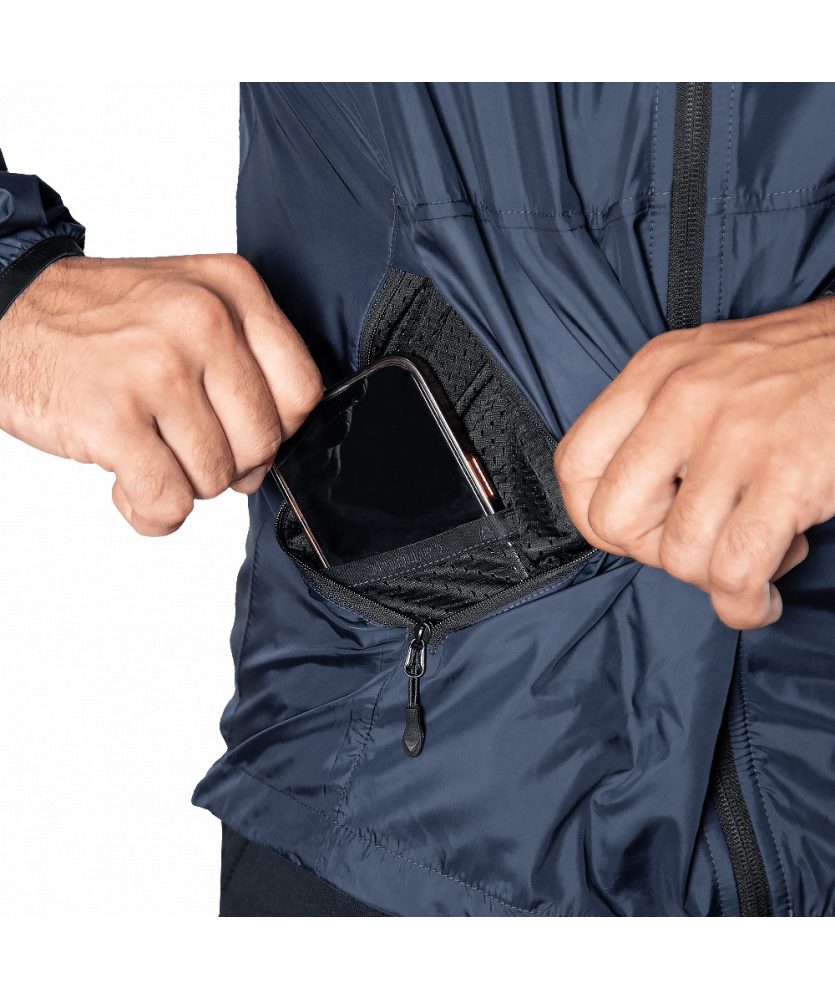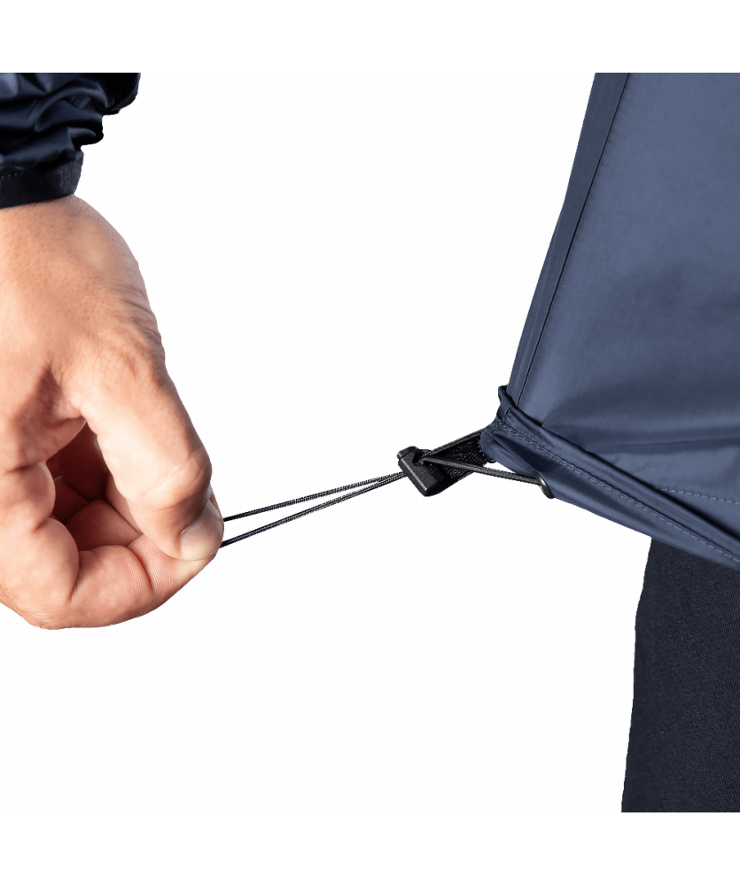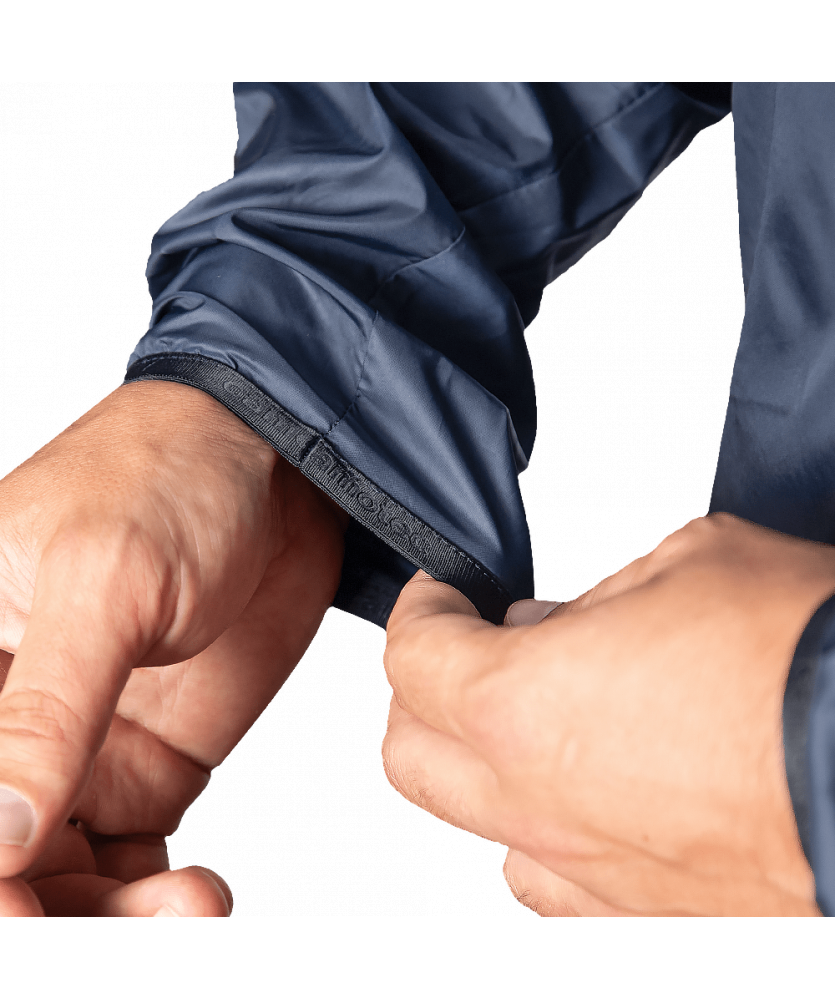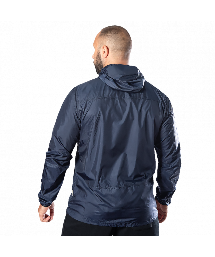 Куртка вироблена з тканини Windout. Це плащова тканина що робить її дуже легкою та компактною. Ця тканина надійно захищає від вітру, а також від вологи та невеликих опадів.