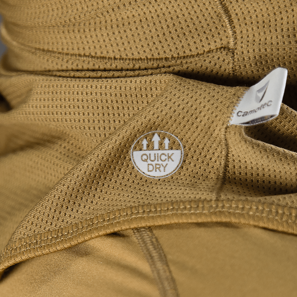 Завдяки високотехнологічній нитці COOLPASS® тканина швидко вбирає вологу, рівномірно розподіляє її по поверхні та сприяє швидкому випаровуванню, створюючи охолоджувальний ефект.