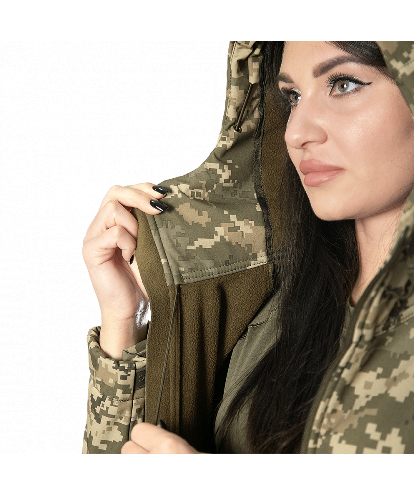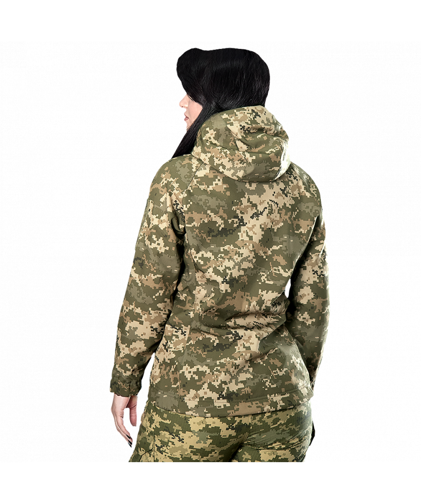 Куртка легка, дихаюча, має ергономічний крій з урахуванням анатомії людини. Трохи ширша знизу, спеціально адаптована під жіночу фігуру.