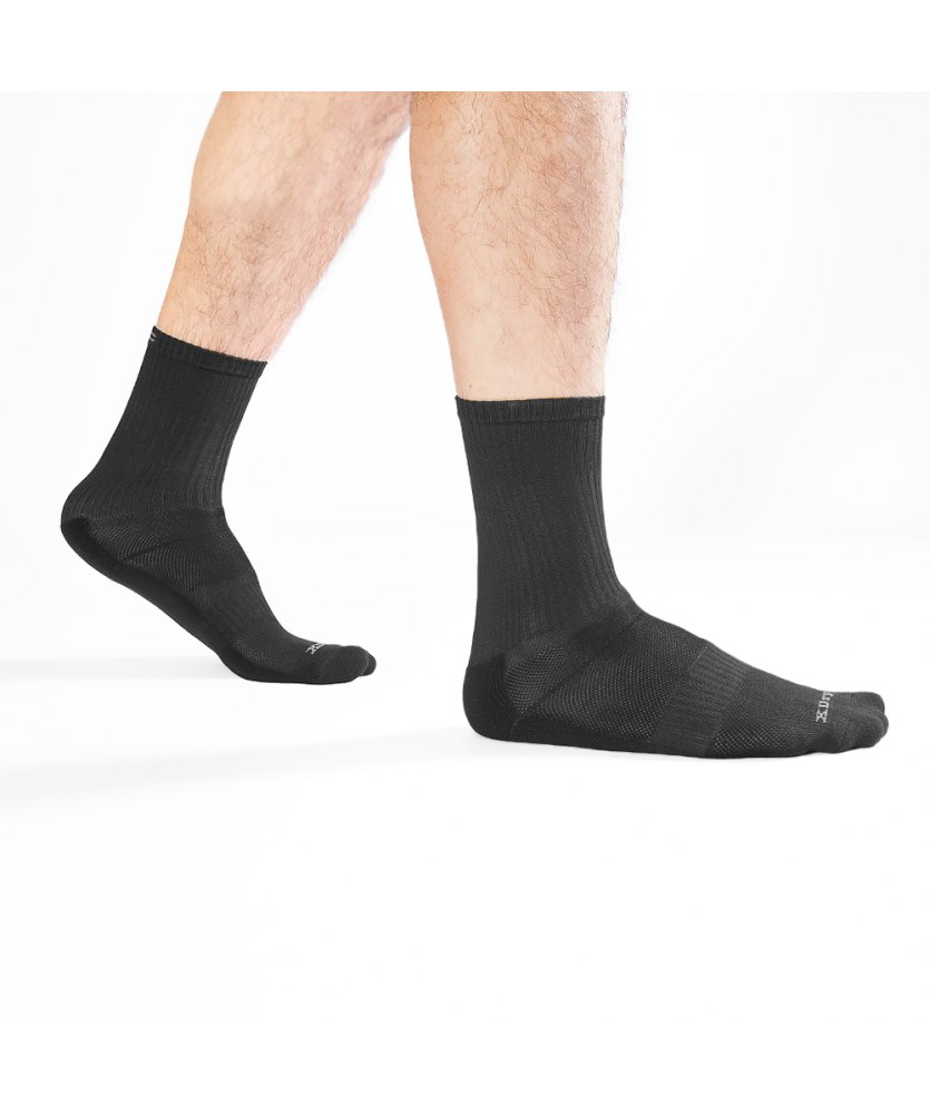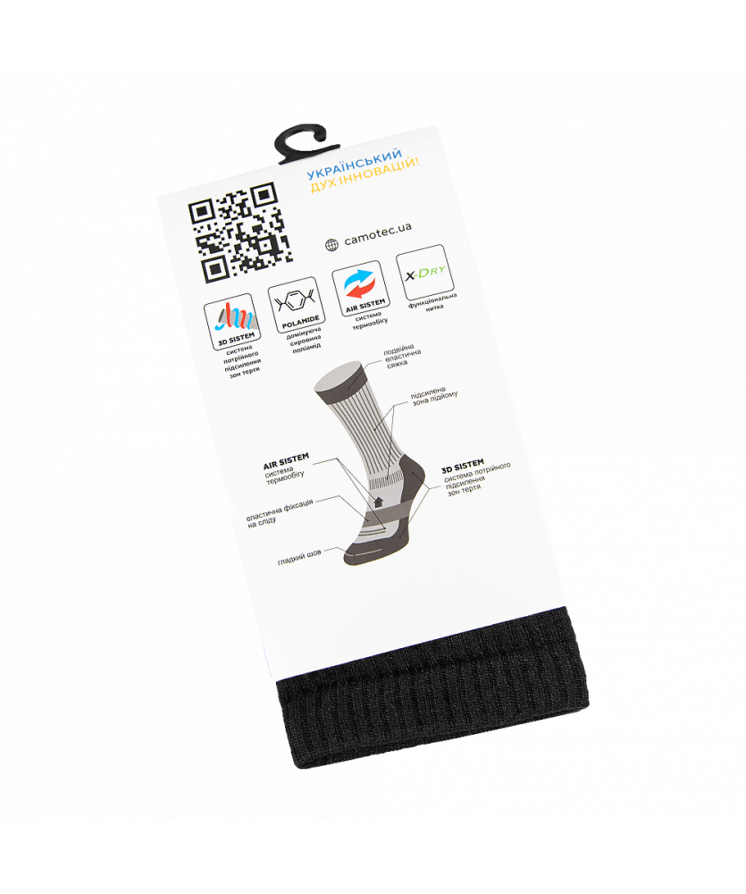 Шкарпетки вироблені з функціональної нитки XDry, що забезпечує відведення вологи та чудову терморегуляцію. Також у складі еластан, який забезпечує еластичність та фіксацію на нозі. Нейлон у складі забезпечує довговічність та зносостійкість. Антибактеріальні властивості волокон зберігають тривалий час свіжість шкарпеток.