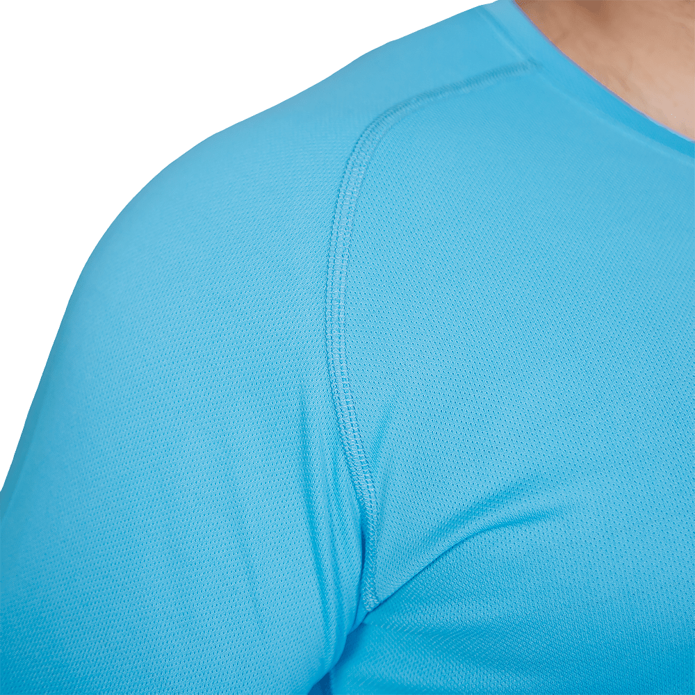 Ключовим елементом є нитка COOLPASS® з чотириканальною структурою, яка швидко вбирає вологу з поверхні тіла, рівномірно розподіляє її та сприяє швидкому висиханню. У тканину також вплетено антистатичну нитку, що знімає статичну напругу і запобігає електризації.