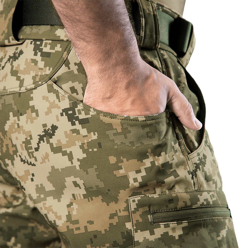 Штани мають ексклюзивний крій від компанії Camotec. Ергономічні виточки в зоні коліна та конструктивні вставки в промежині, що додає комфорту та запобігає натиранню при довготривалому використанні.