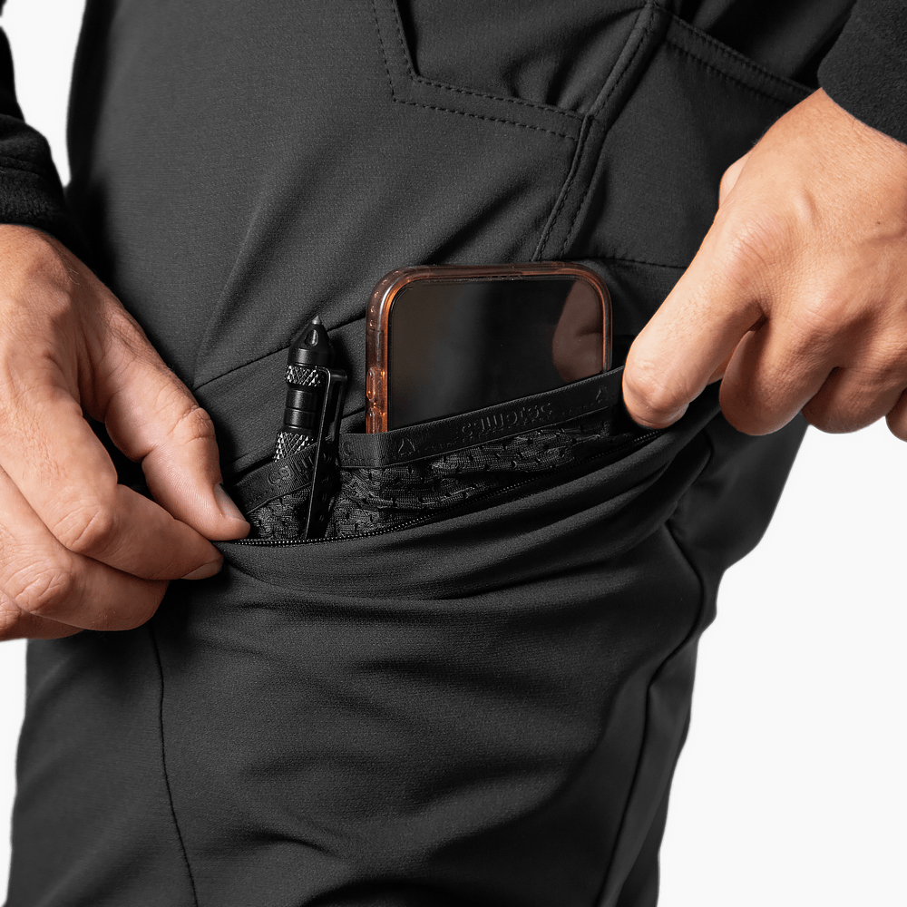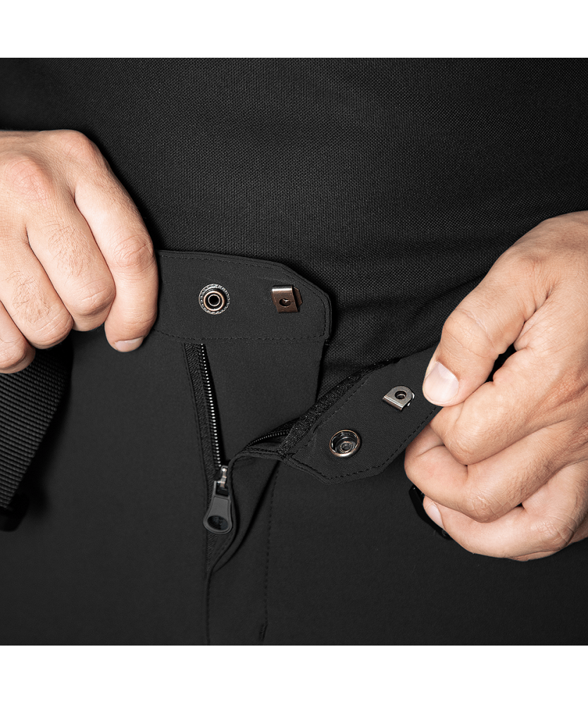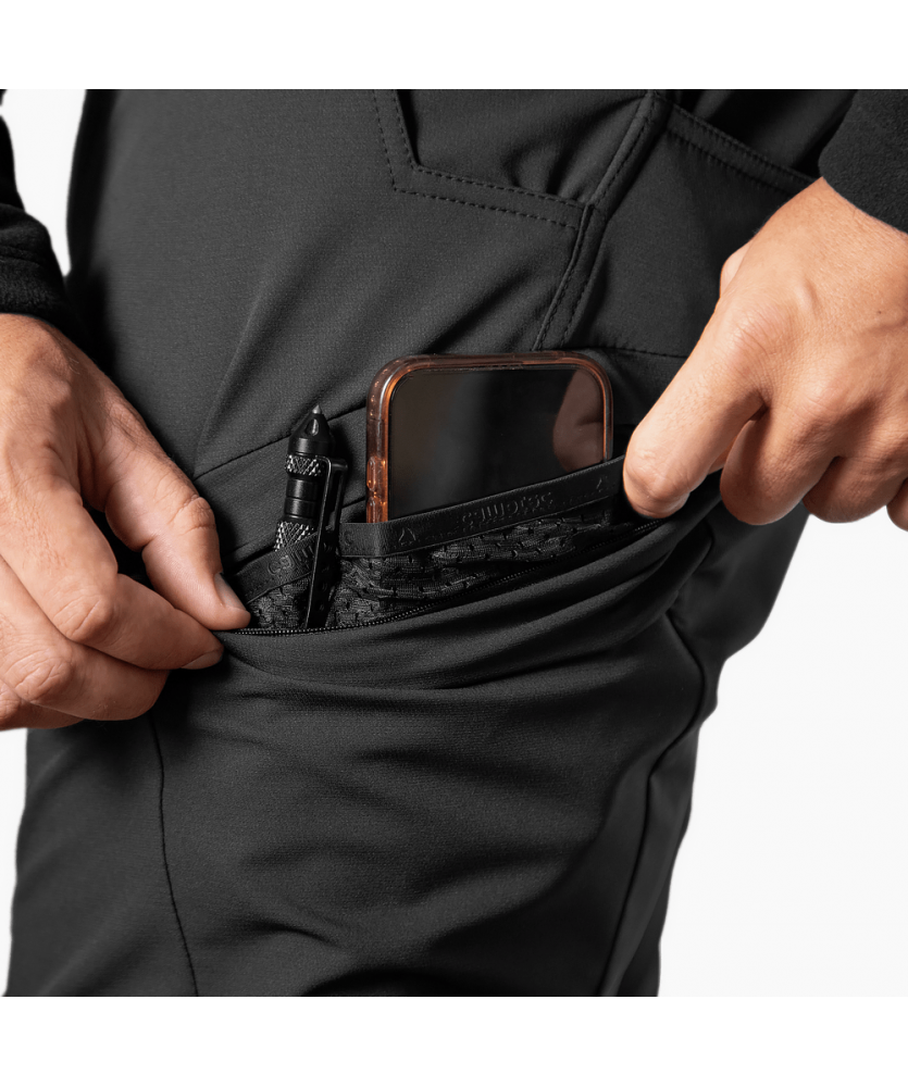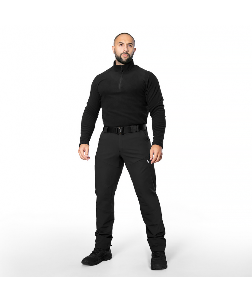 Штани виготовлені з технологічної еластичної тканини Double Weave із подвійним плетінням, що забезпечує високу зносостійкість і надійний захист від вітру. Додавання спандексу підвищує еластичність виробу, зберігаючи його міцність. Тканина додатково оброблена вологовідштовхувальним просоченням, яке захищає від пилу, бруду та вологи.