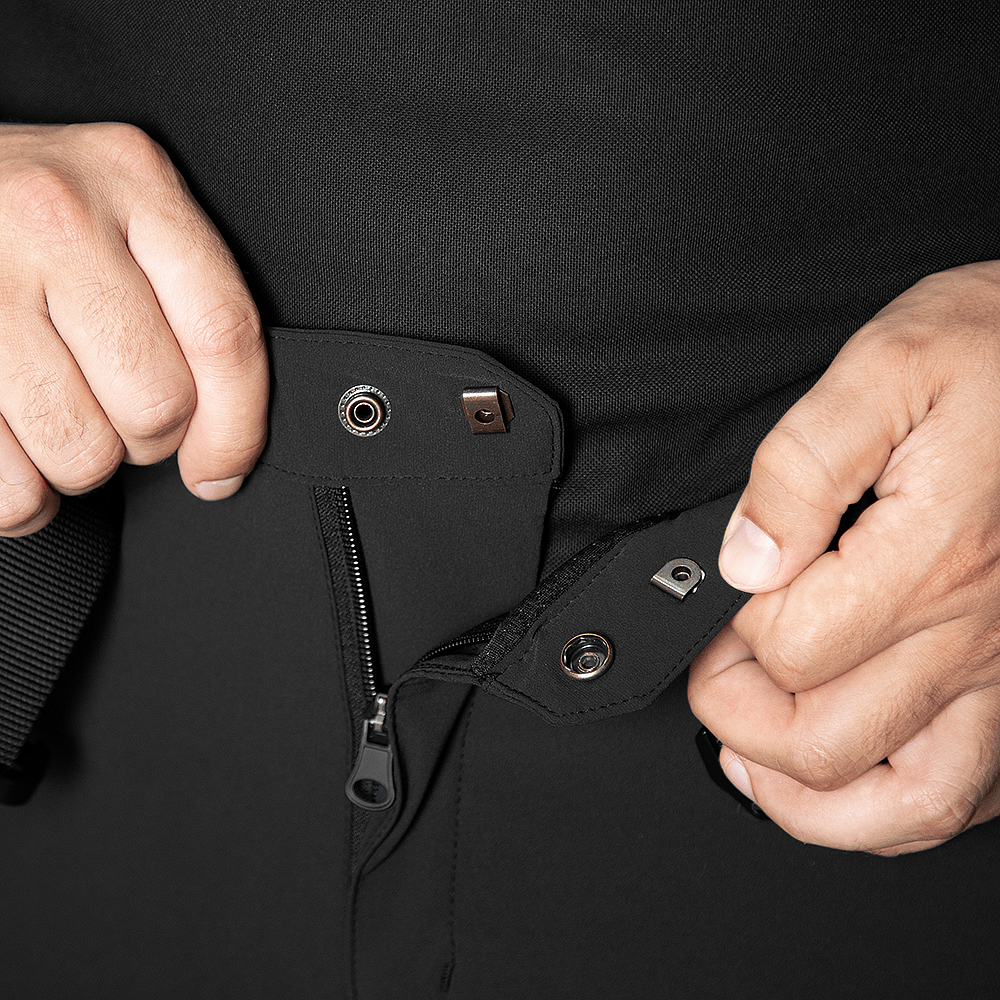 Штани мають 6 кишень: 2 бокові з вентиляційними сітками; 2 задні з вентиляційними сітками; 2 місткі на стегнах із блискавкою та клапаном.