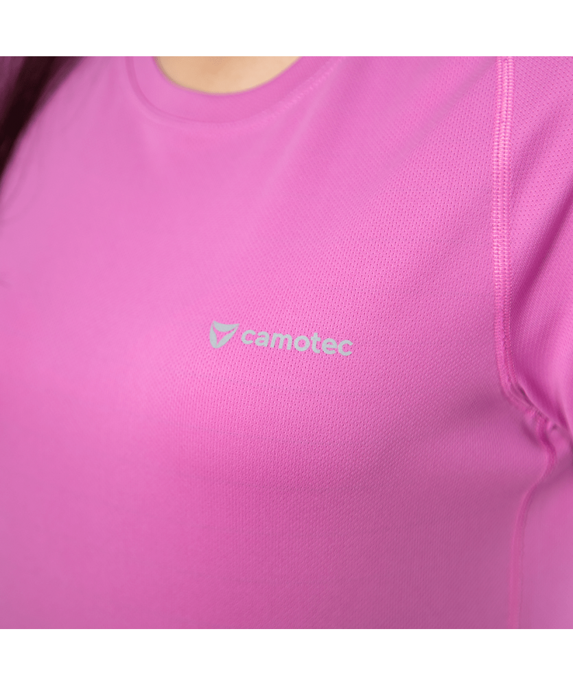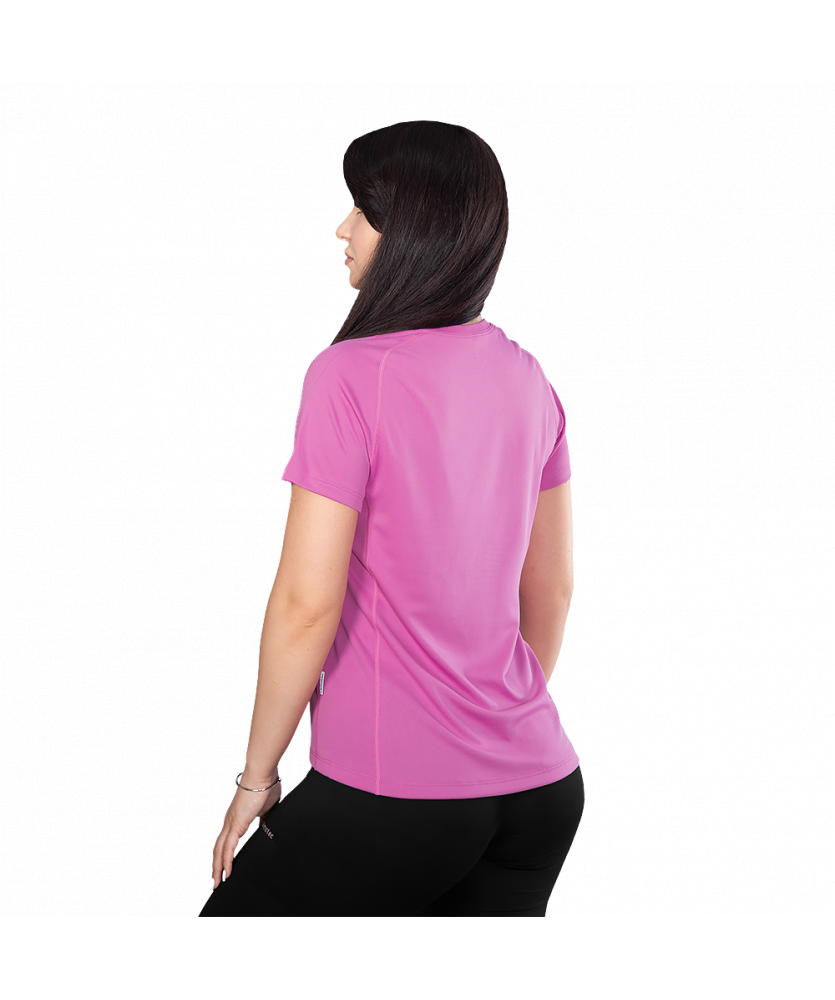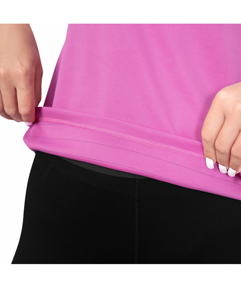 Футболка має сучасний ергономічний крій з урахуванням жіночої фігури, а також зміщені шви на плечах. Завдяки таким конструктивним особливостям футболка не сковує рухів та не натирає при тривалій експлуатації.