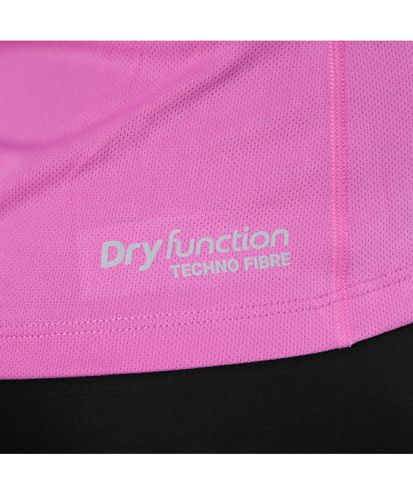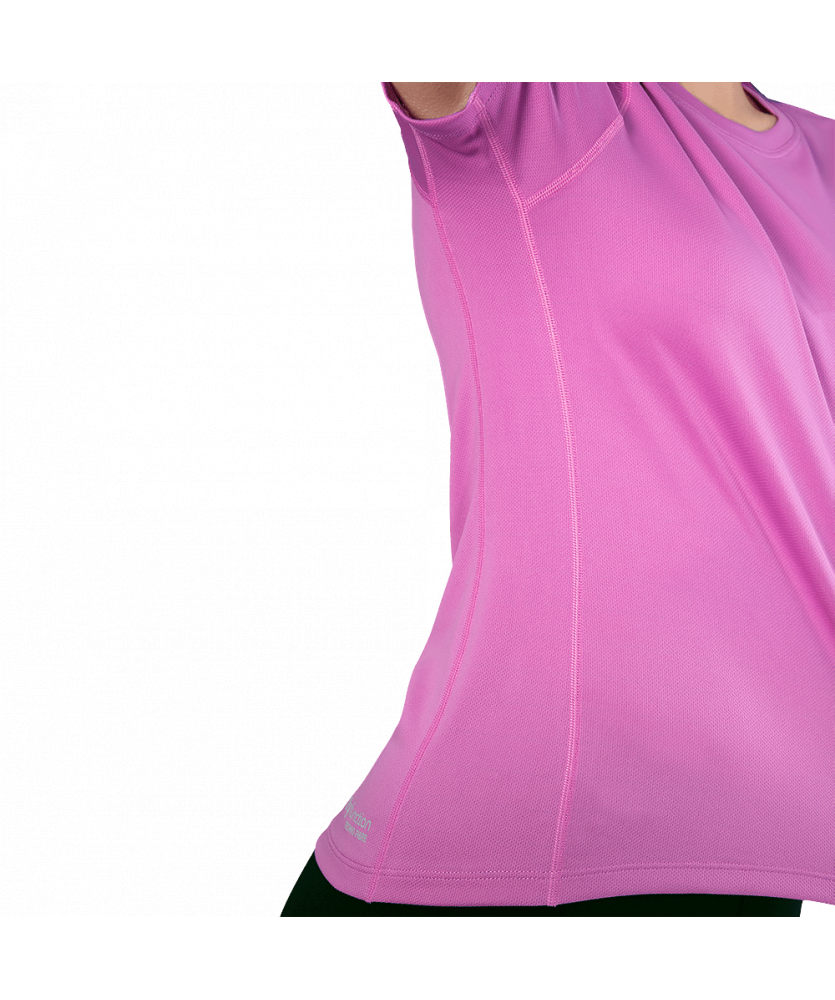 Ключовим елементом є нитка COOLPASS® з чотириканальною структурою, яка швидко вбирає вологу з поверхні тіла, рівномірно розподіляє її та сприяє швидкому висиханню. У тканину також вплетено антистатичну нитку, що знімає статичну напругу і запобігає електризації.